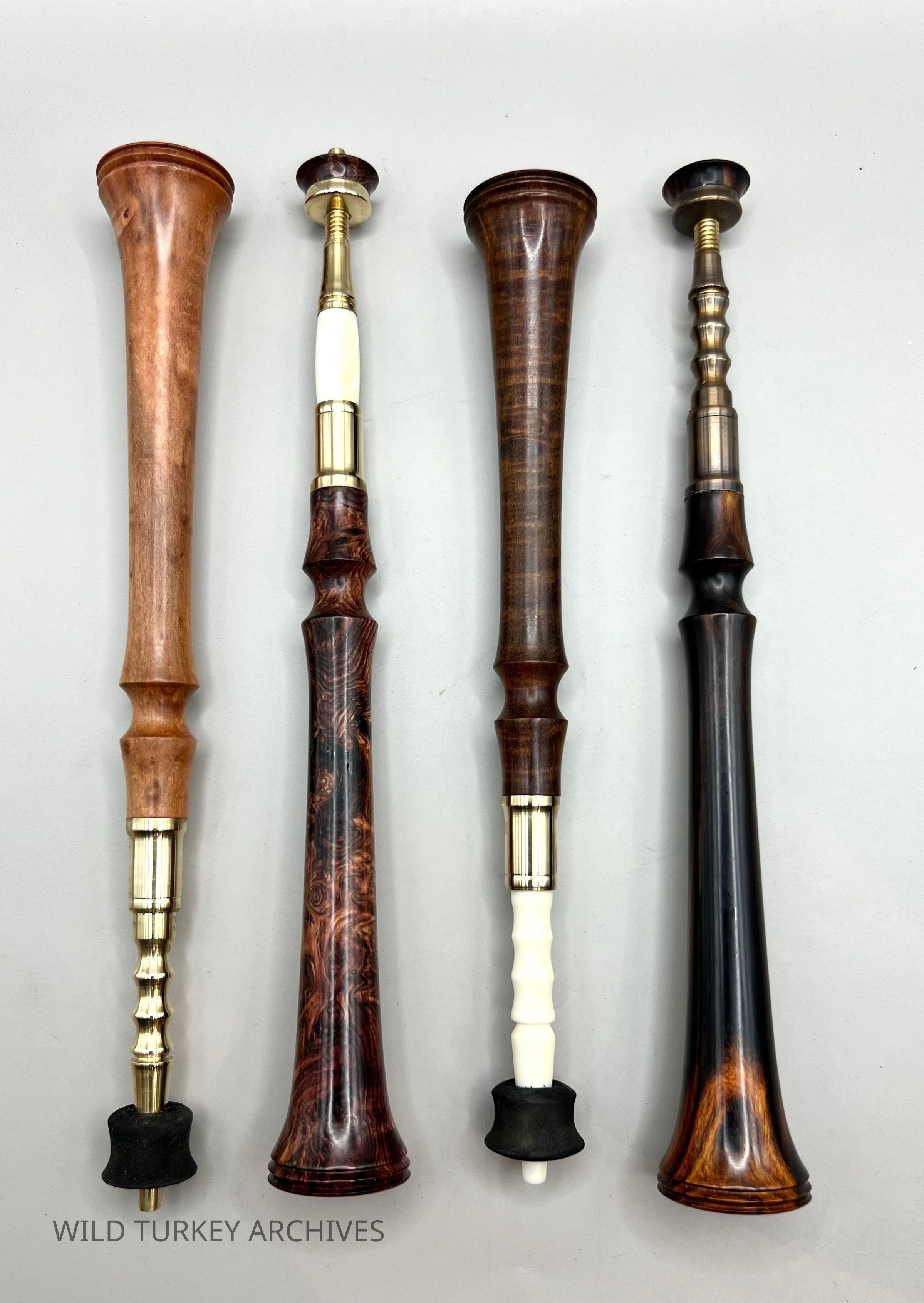 Ellis started making handled short boxes in late 2015, his first Chibouk pipe yelper and true Jordan cane yelpers in 2017, his first scratchbox in 2018, and his first XT trumpet in 2019. He developed the first locking, threaded trumpet lipstop in 2021. He then also began making the Alloy Assassin Aluminum cerakote and "heavy metal" brass, copper, Damascus, and Mokome Gane yelpers.