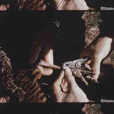 people setting up a live trap for turkeys