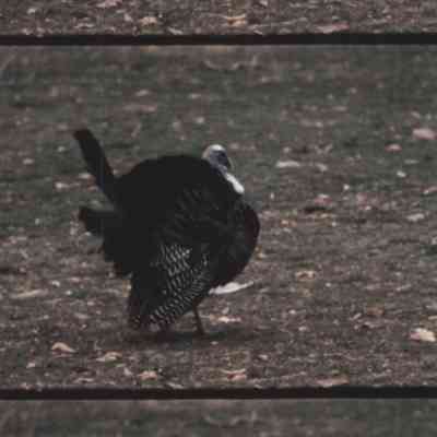 a wild turkey scratching in the leaves