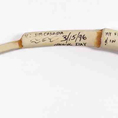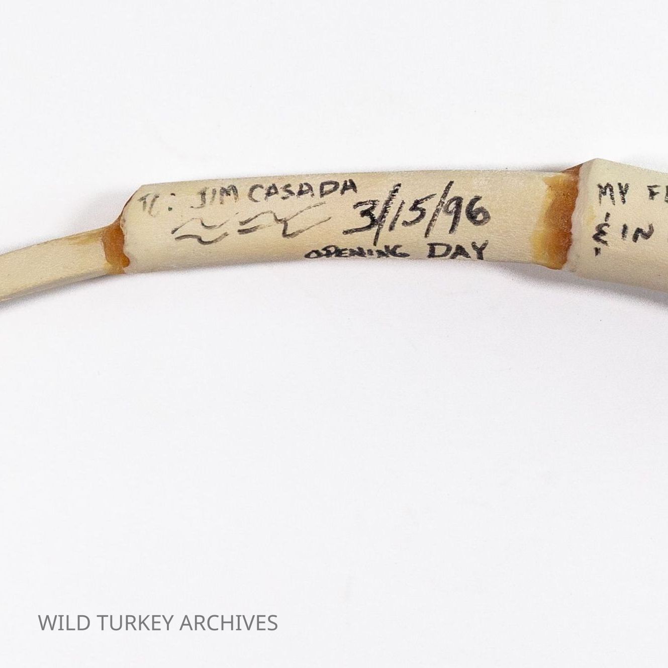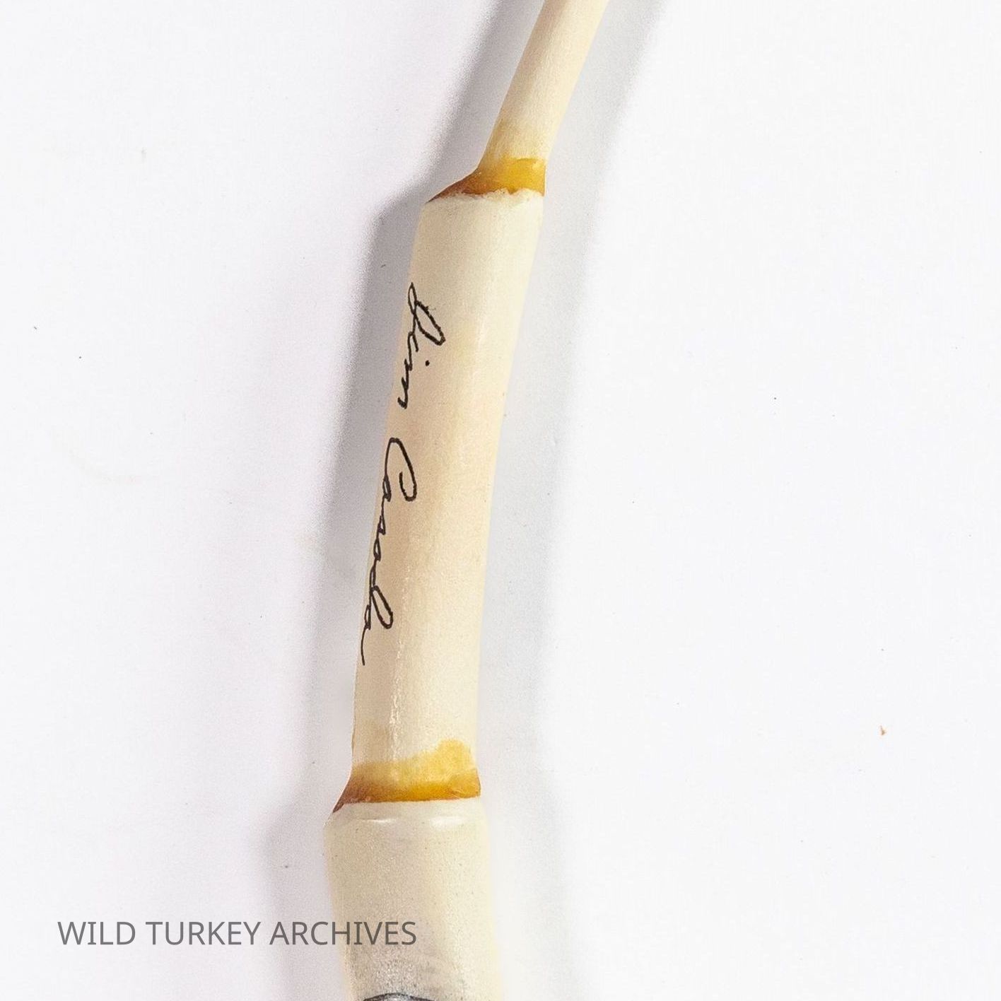 Here is something a little different! Mark A. Drury was an accomplished turkey hunter, calling champion, and game call company owner, but we suppose there are few custom calls he made. One such was made and gifted to outdoor writer Jim Casada by Drury. The call may have been made from wild turkey wingbones taken from a harvested gobbler on a hunt the two shared together. The call is inscribed "To Jim Casada 3/15/96 Opening Day. My friend in business & in sport. Mark A. Drury." The call is also signed by Jim Casada.Collection
