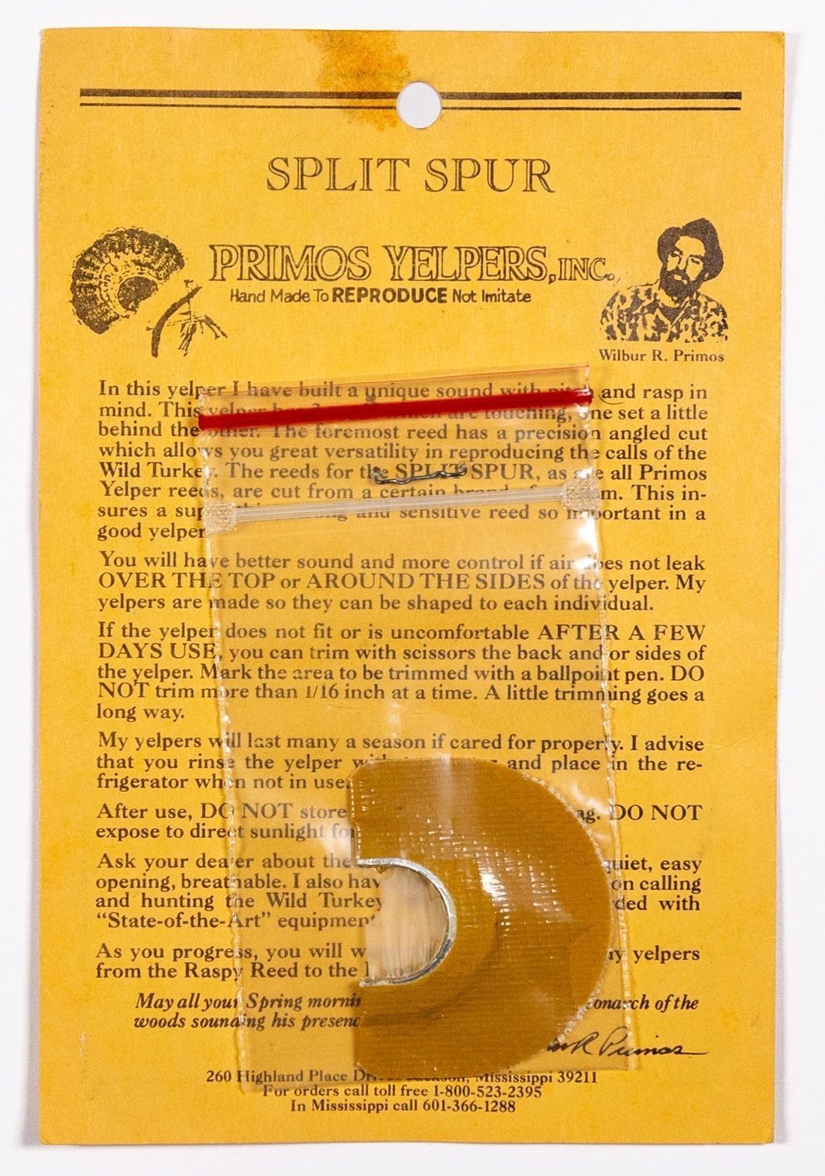 When Will Primos launched Ptimos Yelpers, Inc.in 1976, he startyed with diaphragm calls. Stacked frame calls were especially popular for the quality of wild turkey language they reproduced. This is the Split Spur.Collection