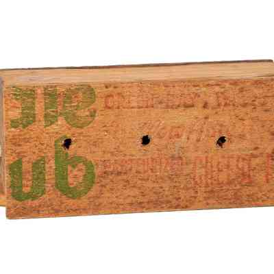 There are turkey calls for which the makers may always remain a mystery, but it does not diminish our appreciation of them even a little. Some of the simplest, most innovative, most beautiful, most crude, and most unique calls are in the realm of folk art turkey calls. That class of calls includes examples that cover all of the aforementioned attributes. Many were built decades ago, even over a century ago, by passionate turkey hunters with what they had or could get. We can't know which served as examples that others later copied, or were themselves fashioned after existing calls. They are all instruments of historical interest and value. This call is a pushpin crafted from repurposed wood, perhaps takend from a cheese box or other type of crate that was available to the unknown but handy maker.Collection