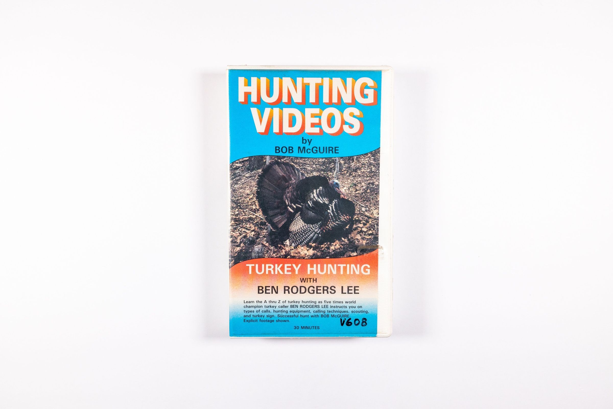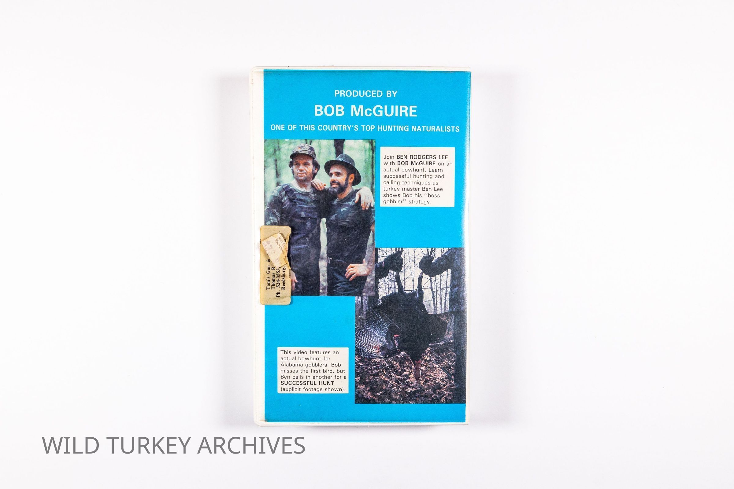Ben Lee was an early ambassador of modern turkey hunting, celebrated for his expertise in turkey hunting and calling, which he often shared through seminars. The advent of home video revolutionized the hunting industry by bringing hunts into people's living rooms for on-demand viewing. As a result, many production companies began creating content to showcase their turkey calls and gear, turning the stars of these videos into celebrities. This trend began in 1985, and the 30-minute "Turkey Hunting With Ben Rodgers Lee," released in 1986, was the first title featuring Lee. It was produced by hunter and naturalist Bob McGuire, and was among the very first videos of its kind to hit the market. The sleeves containing the videotape were marketing tools, often colorful and with images and titles that greatly appealed to their intended audience.Collection