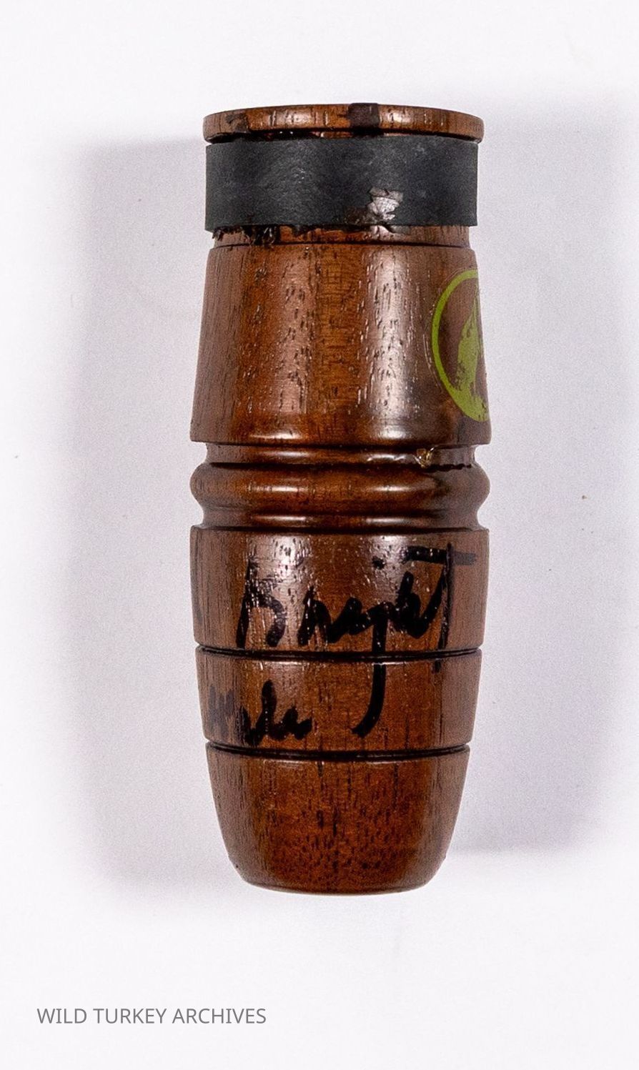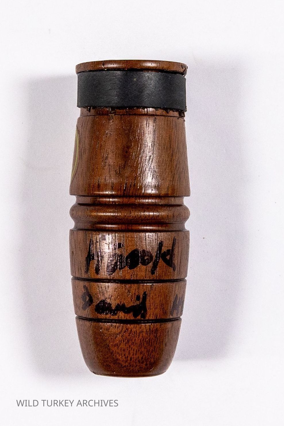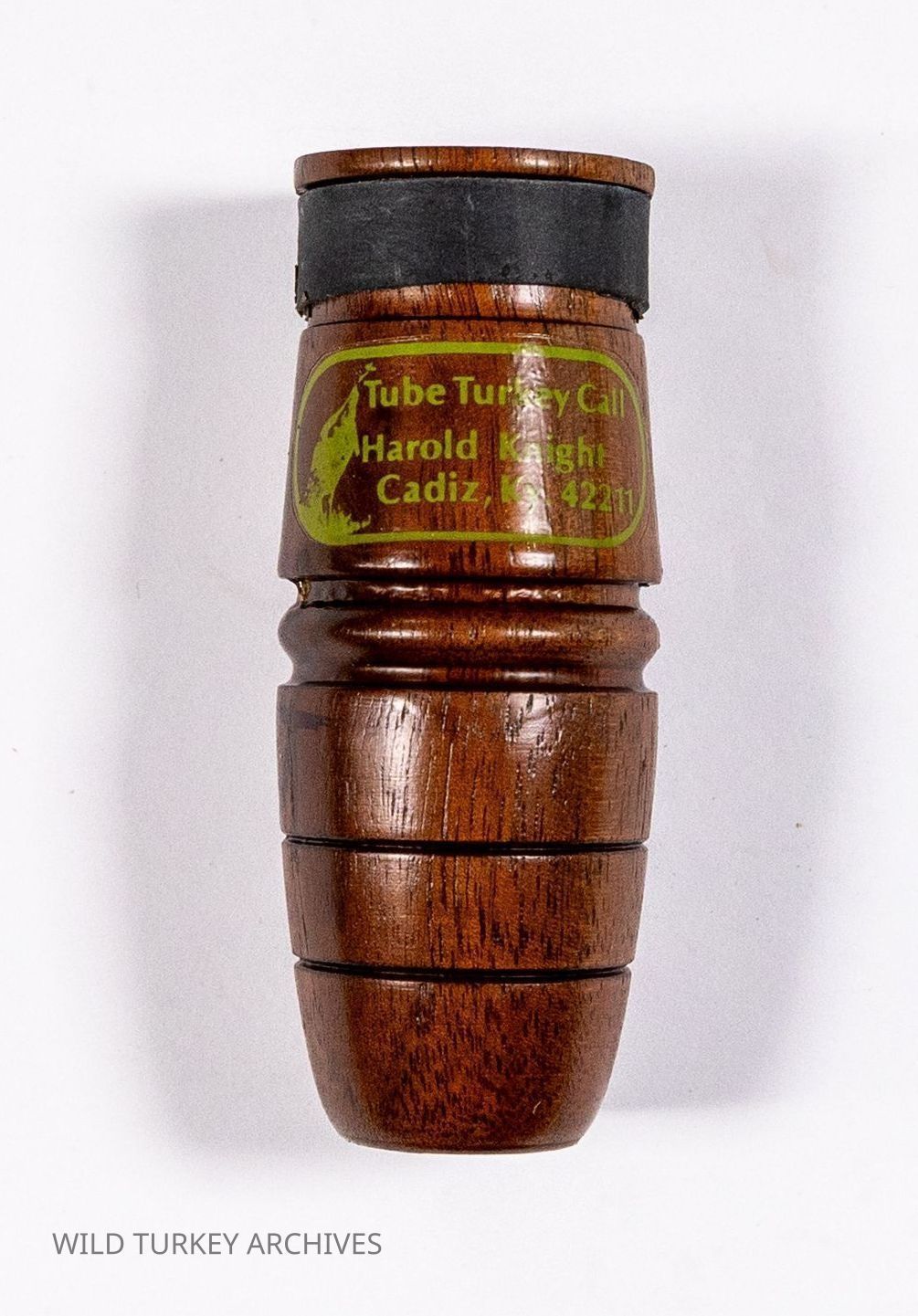 Knight & Hale one piece wooden turkey tube call with decorative rings on barrel-shaped bellEntry/Object ID
