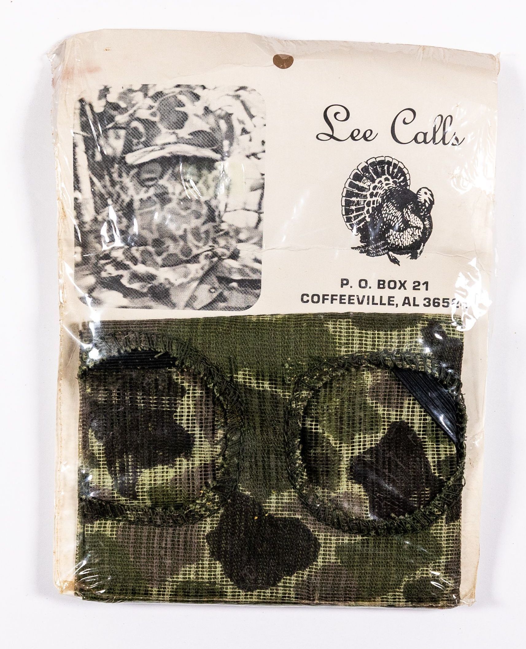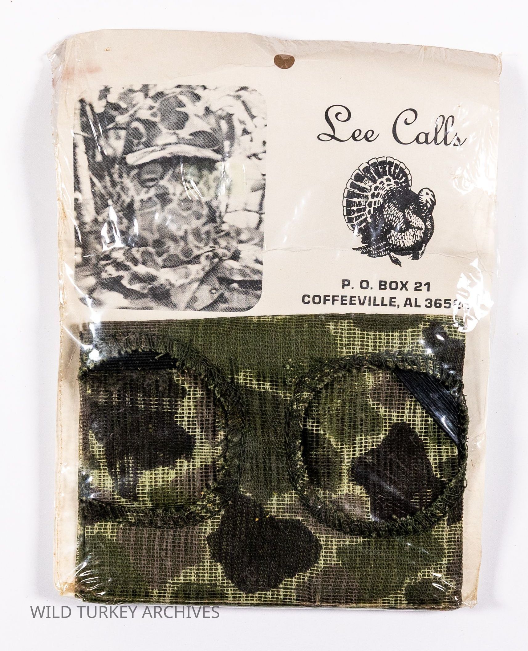 Lee Calls was an early venture by the notable turkey-hunting personality Ben Rodgers Lee. Prior to the rise of modern-day hunting camouflage, U.S. Woodland (standard issue camouflage pattern of the United States Armed Forces from 1981 to 2012) was common for hunting clothing and gear. This full-face headnet, or facemask, was offered in woodland camo.Collection