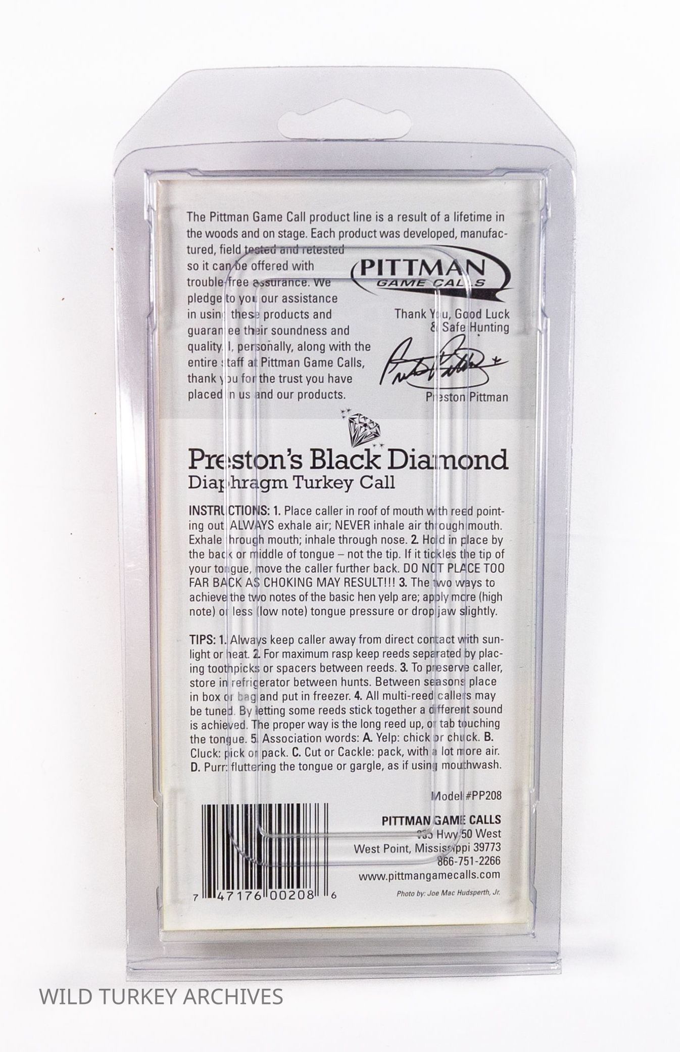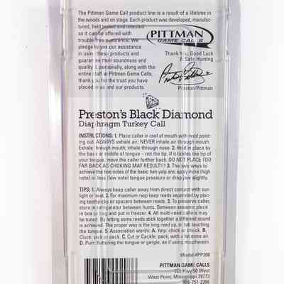 Pittman Game Calls Preston's Black Diamond Diaphragm Turkey CallEntry/Object ID