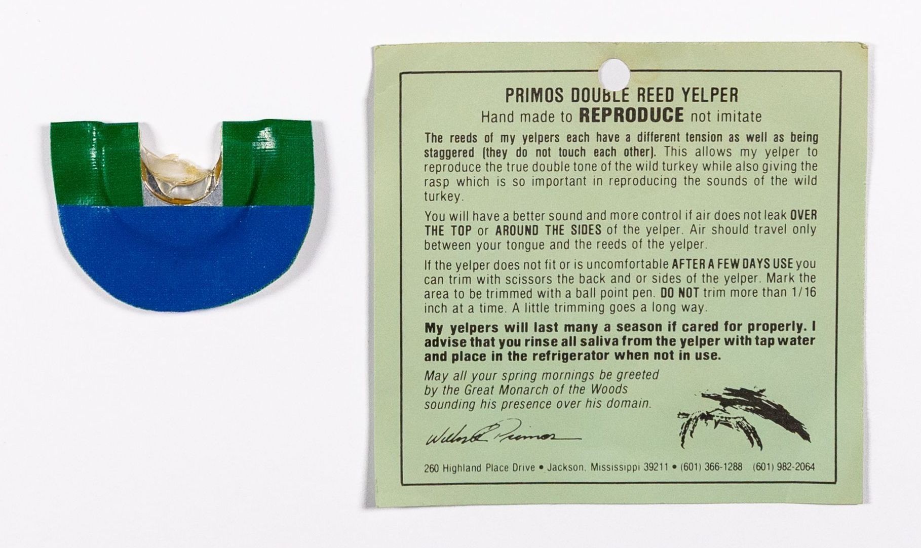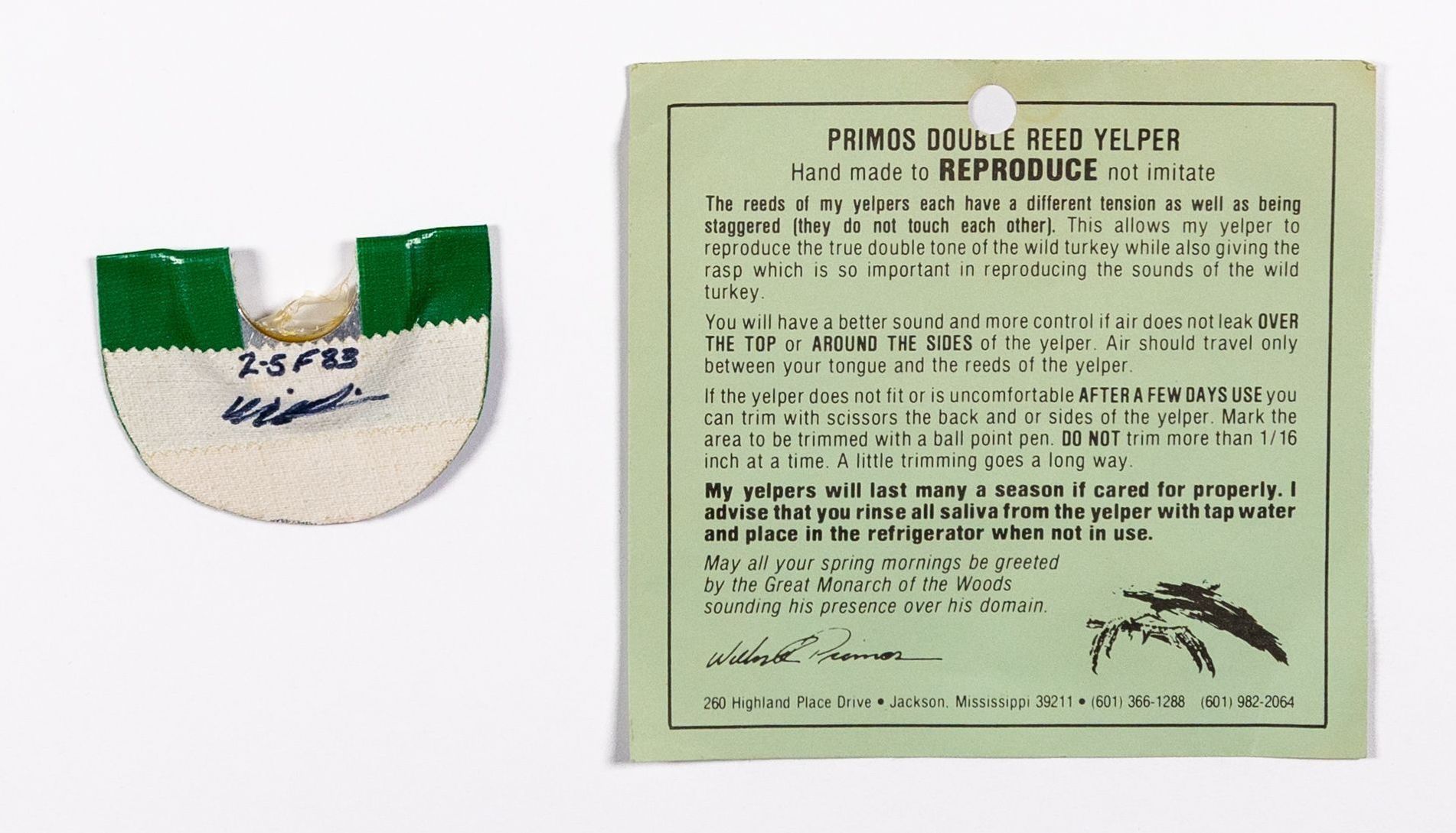 Early Primos Yelpers Double Reed Yelper diaphragmEntry/Object ID