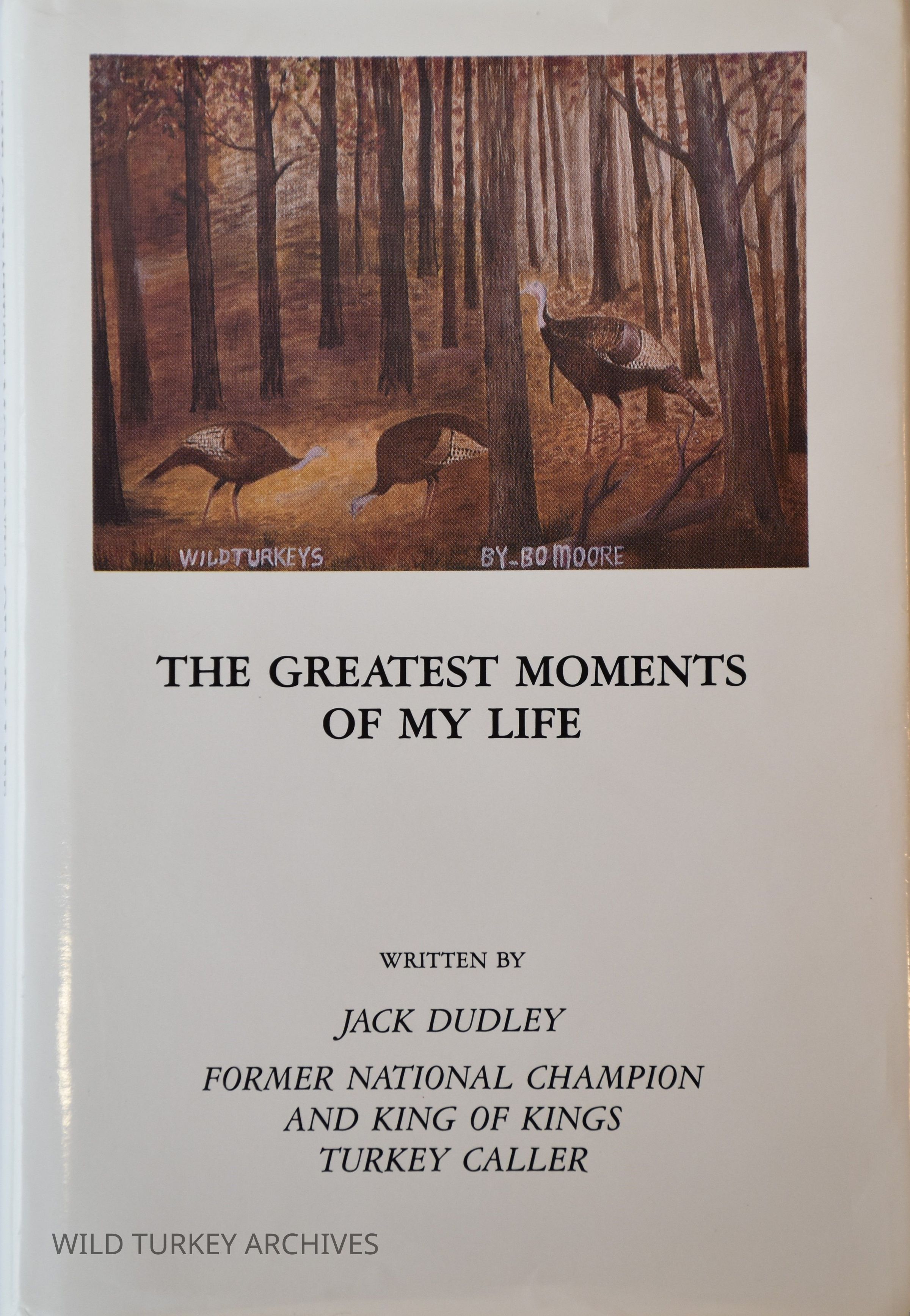 The Greatest Moments of My Life by Jack Dudley was privately printed by the author in 1991. The book has a Foreword by the notable Gene Nunnery and Introductory inserts by Preston Pittman and Brad Brady. Jack Dudley was a decorated competitive turkey caller from the late sixties to the late seventies, best known for his ability to call using his natural voice. Still today, many consider him the best natural voice caller to step on stage or enter the woods. It is said his ability to Gobble yet goes unmatched. The Greatest Moments of My Life is a collection of stories about some of Dudley's most memorable hunts. Like many hunters, Dudley would name birds that would challenge his abilities, and in most cases, those birds would be bested by Dudley. With stories written just as they would have been told while sharing a campfire with Dudley any hunter would do well to pursue and read The Greatest Moments of My Life.Context