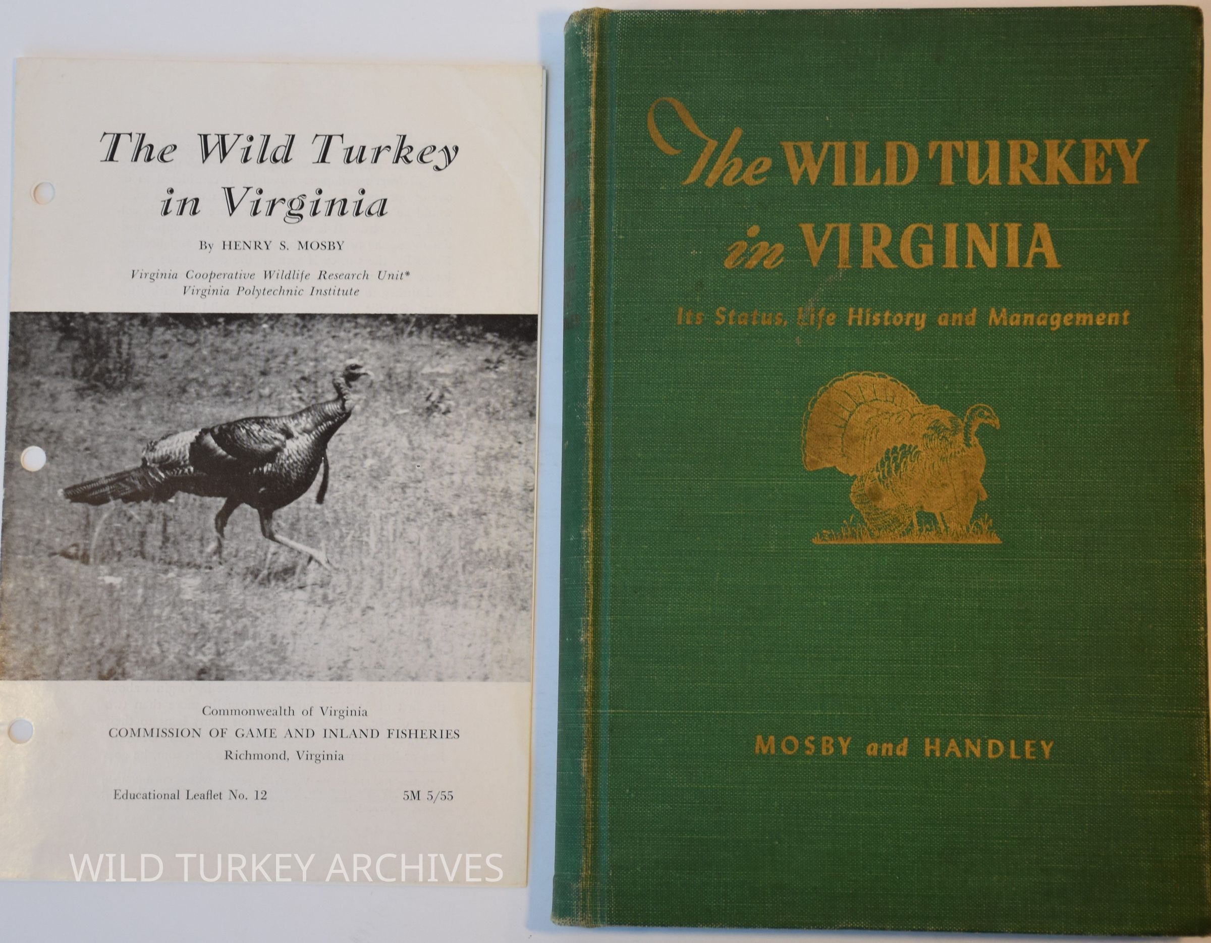 The Wild Turkey in Virginia by Henry S. Mosby and Charles O. Handley was published by Pitman-Robertson Projects-- Division of Game Commission of Game and Inland Fisheries, Richmond, Virginia in 1943. In 1939, Henry S Mosby began his career as a field biologist studying wild turkeys for the Virginia Commission of Game and Fisheries. While working on wild turkey research, he completed his doctorate at the University of Michigan in 1941. Mosby's work with the wild turkey would essentially become his dissertation and, in large part, the book, The Wild Turkey in Virginia. Alongside Handley, he would put together what many consider to be the seminal study of the wild turkey and the foundation for its restoration and subsequent research. With chapters on history, diseases, habitat, hunting, and so much more, this book is a must-have for anyone wanting to learn about the early days of wild turkey research. Mosby would play such a vital role in the birth of wild turkey research that the NWTF would eventually name an award after him. The National Wild Turkey Federation's Henry S. Mosby Award remains the pinnacle of awards for many biologists who study this grand bird.Context