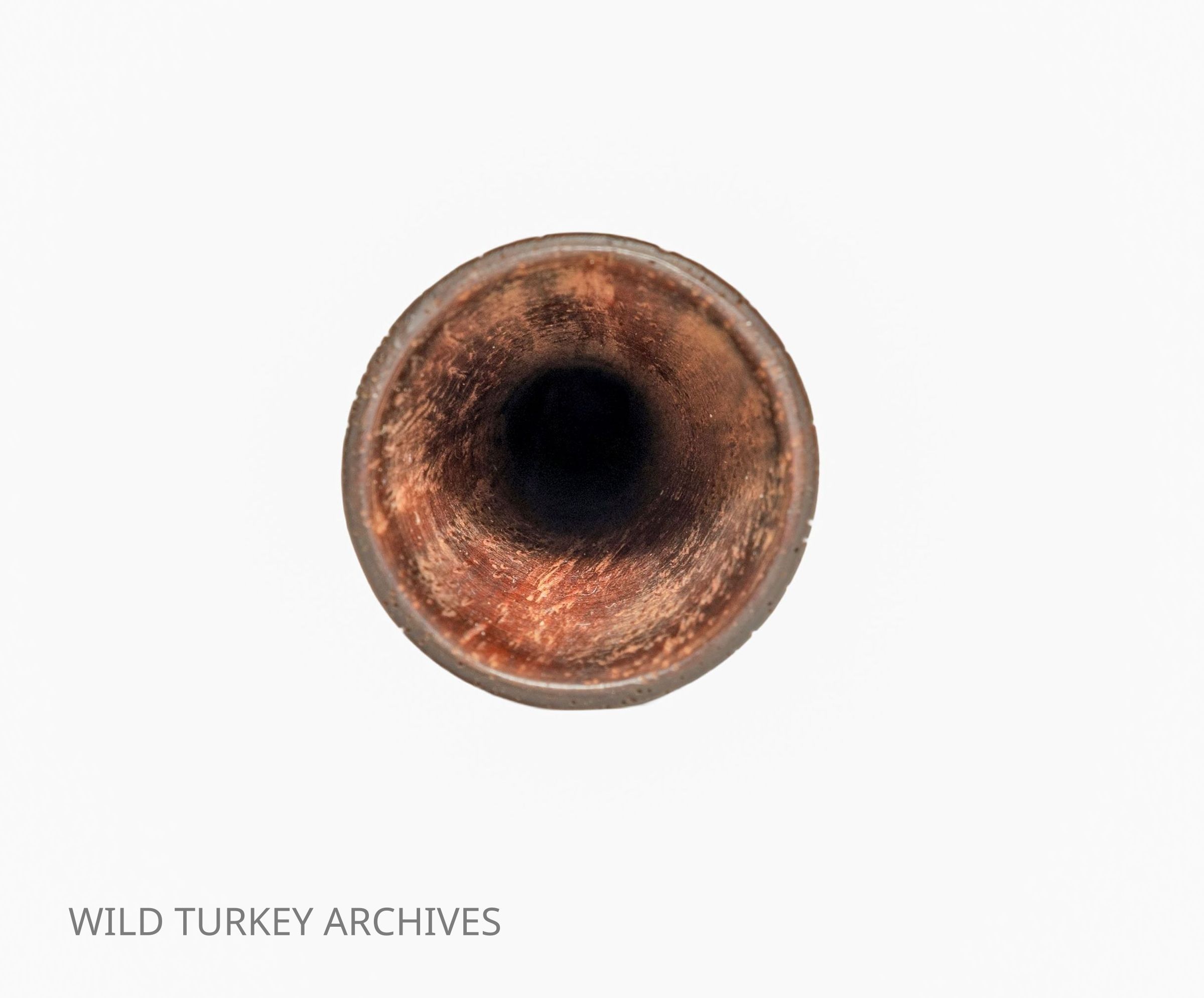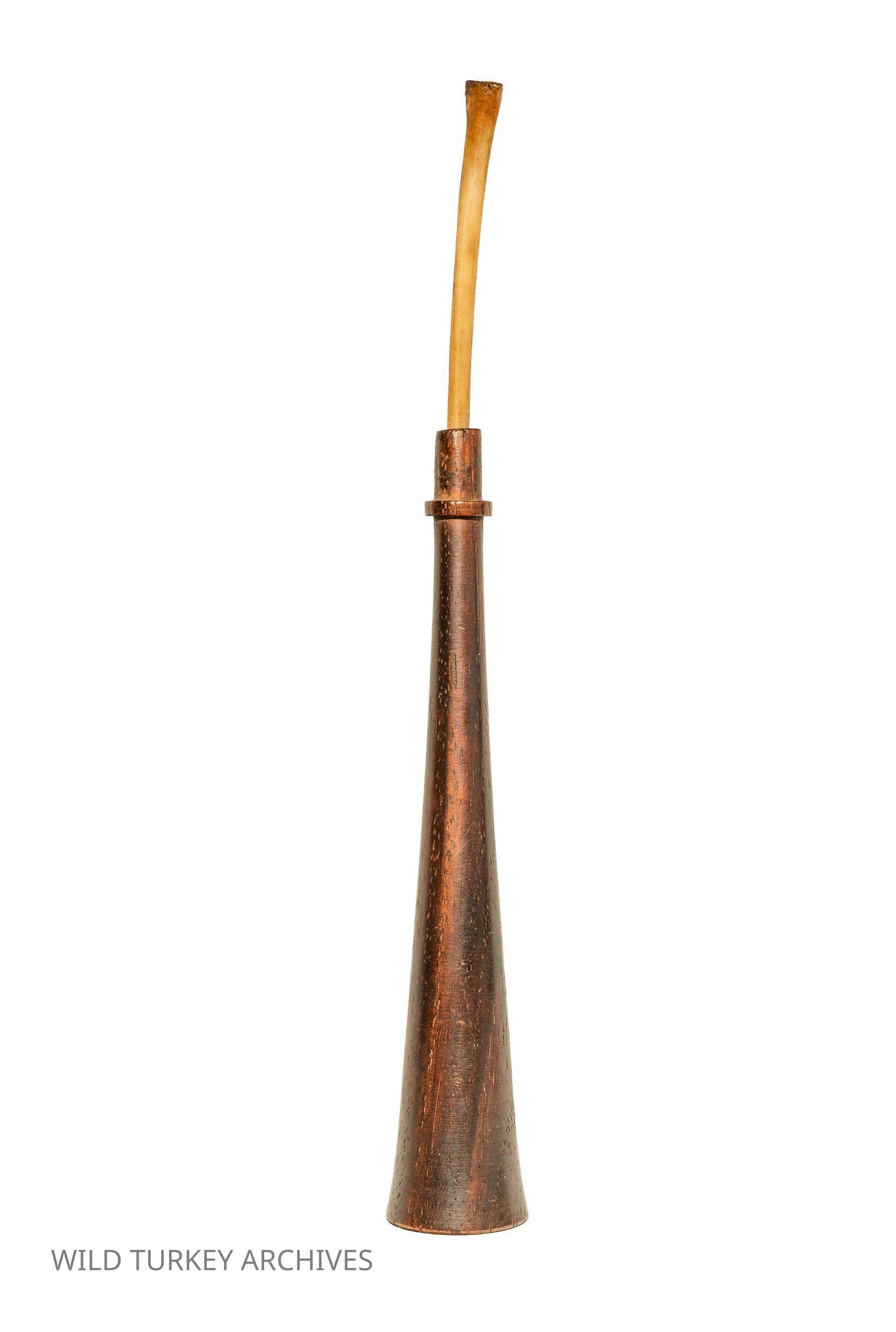 Of the many turkey calls for which we cannot identify makers, there are a plethora of old suction calls. With Native Americans first employing wingbones as turkey calls, every succeeding generation has added their own tweaks. This one is a simple two-piece trumpet with a turned bell and a wingbone inserted for the mouthpiece. The signs of age are immediately apparent.Collection
