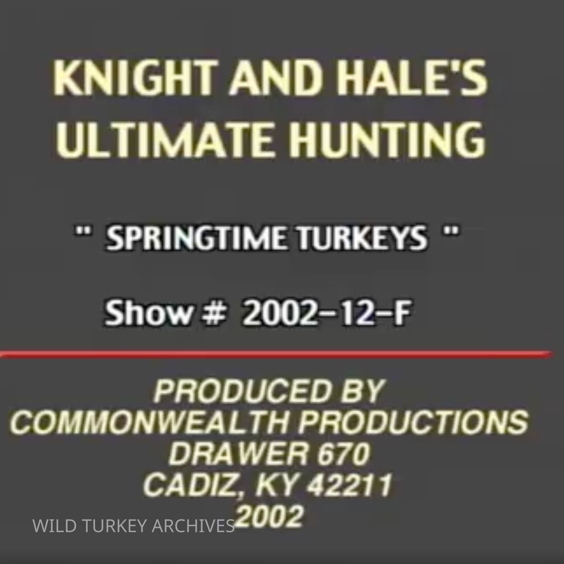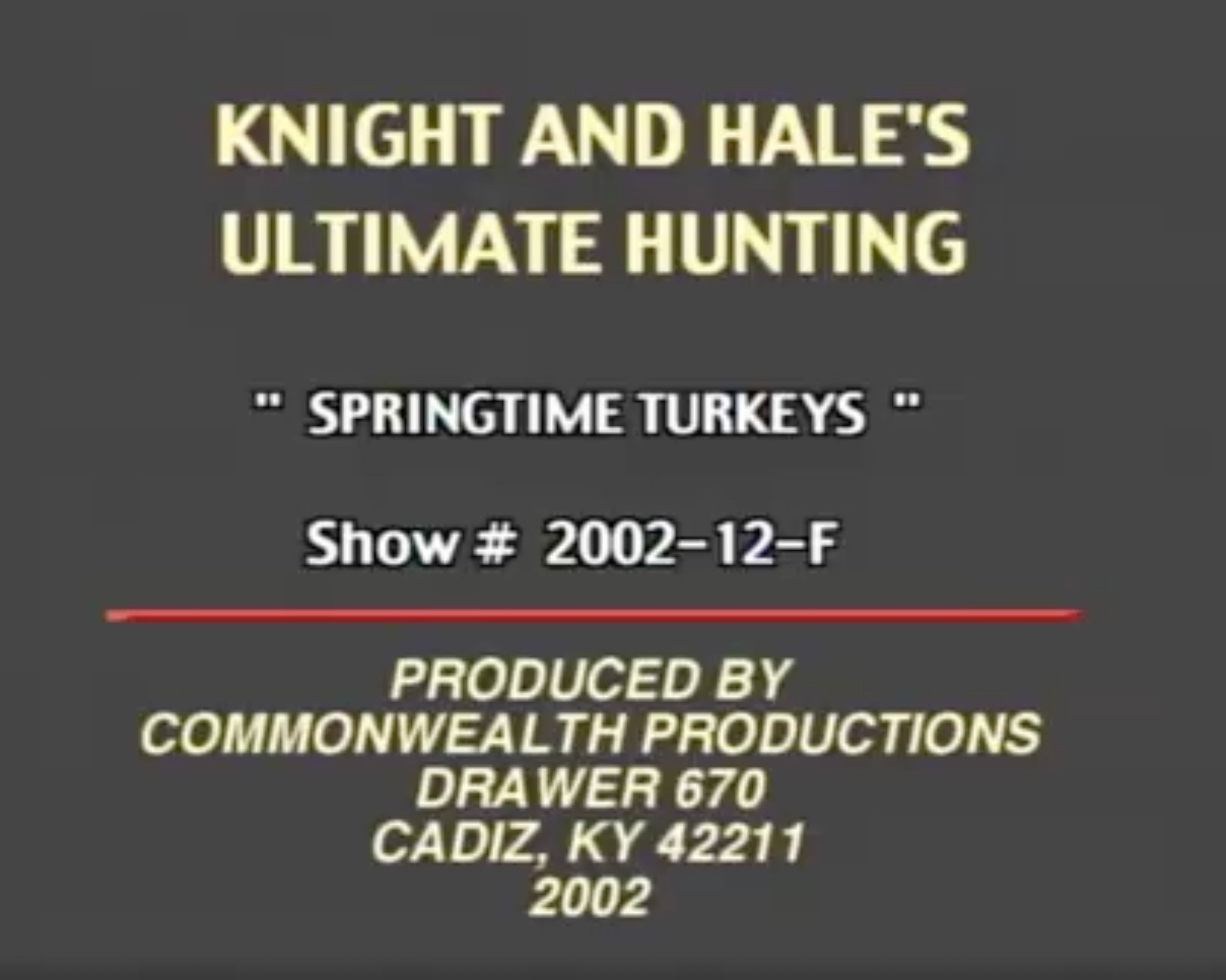 Knight and Hale // 2002 Springtime Turkeys is a classic early-2000s turkey-hunting episode featuring multiple spring hunts, calling demonstrations, and real encounters with active longbeards. The video highlights how Knight & Hale hunters use realistic yelps, clucks, and soft hen talk to work responsive toms through timber and open fields. It mixes instruction with action, showing several clean, successful harvests while emphasizing patience, smart setups, and natural calling techniques during the spring season.Aspect Ratio