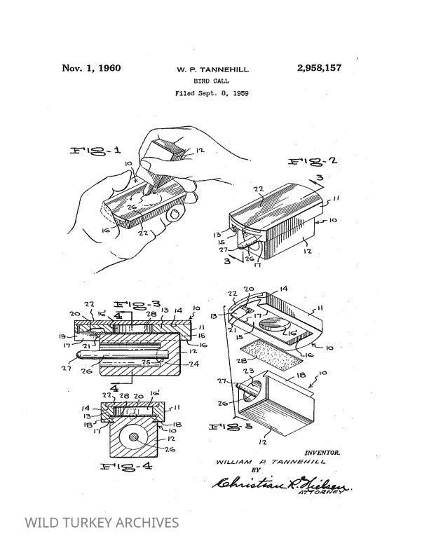 W.P. Tannehill patent for a peg and slate call issued November 1, 1960Entry/Object ID