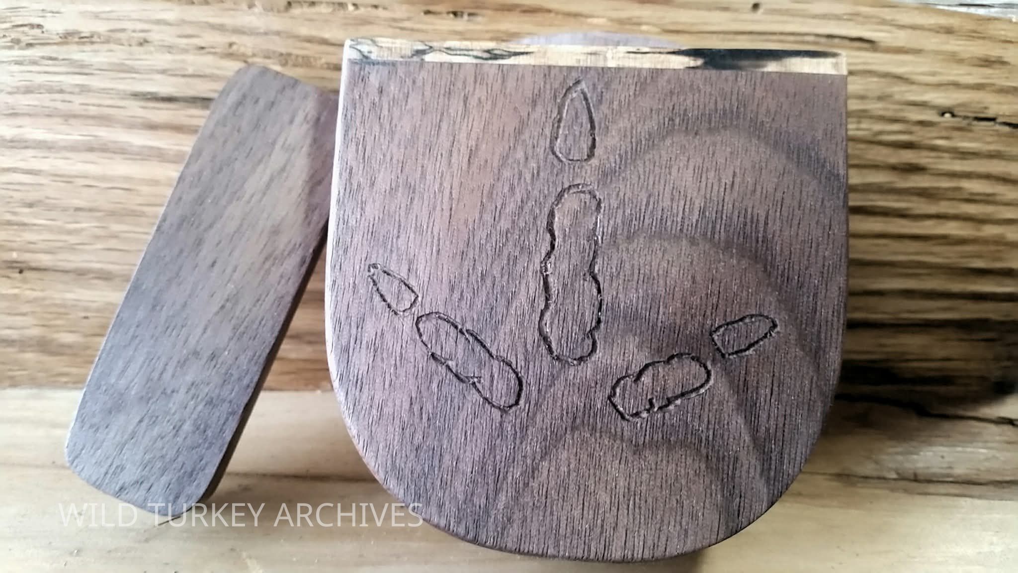 Wray's first calls were along the lines of a Rhodes-style scratch box, then he designed his own style from a dip can. He has done several variations of sawn & glued box calls, and did a version of a Cost Style for a while, and still does so on occasion. He came up with a new design in 2022 and has used it since. He primarily builds scratch box calls. Recently, he made a few incorporating barn roof tin & Corian and old wooden boat oars. He has made several box calls, cane yelpers, peg & slate & tongue calls over the years.Created By