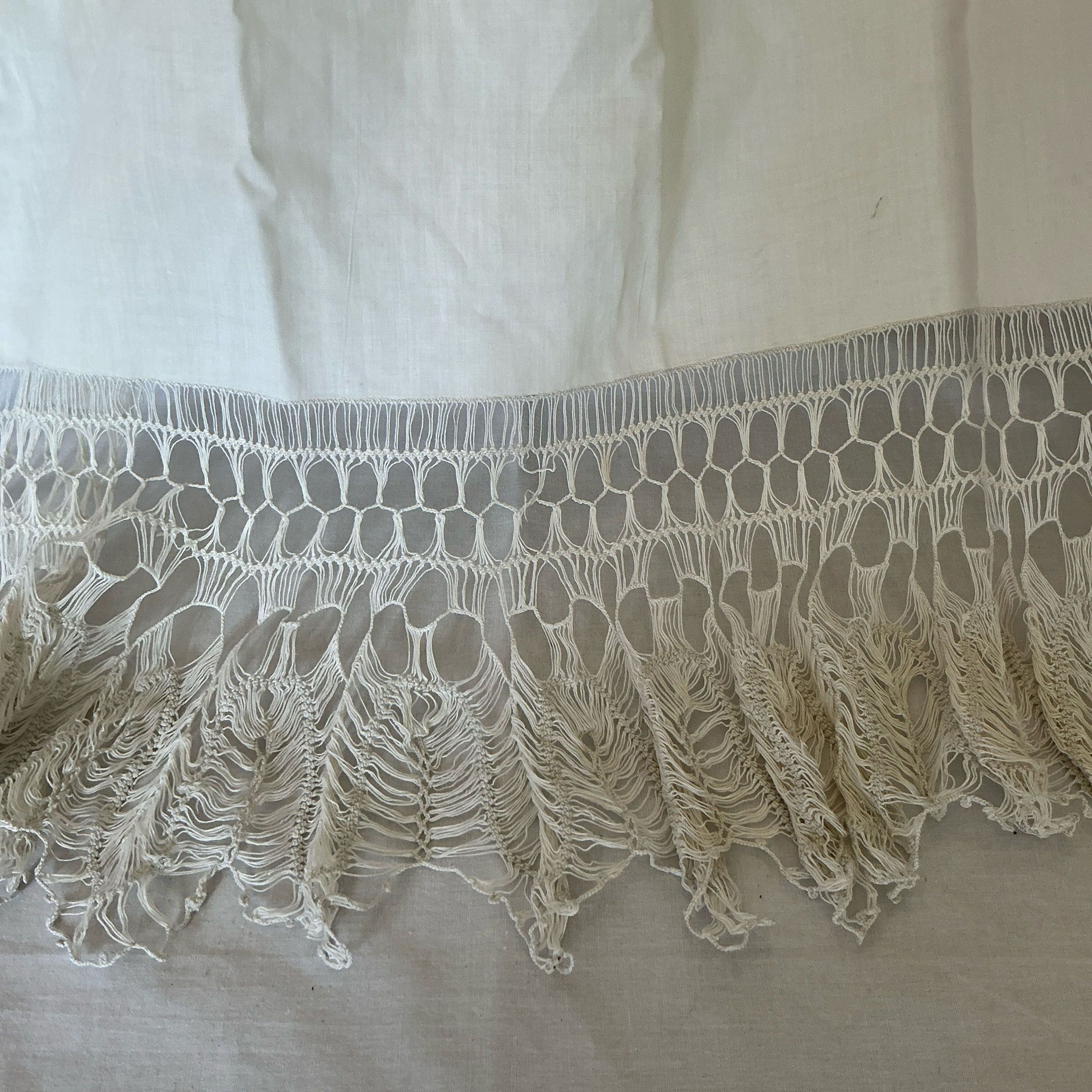 Apron with hairpin lace.