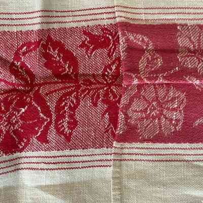 White and Red Damask Towel