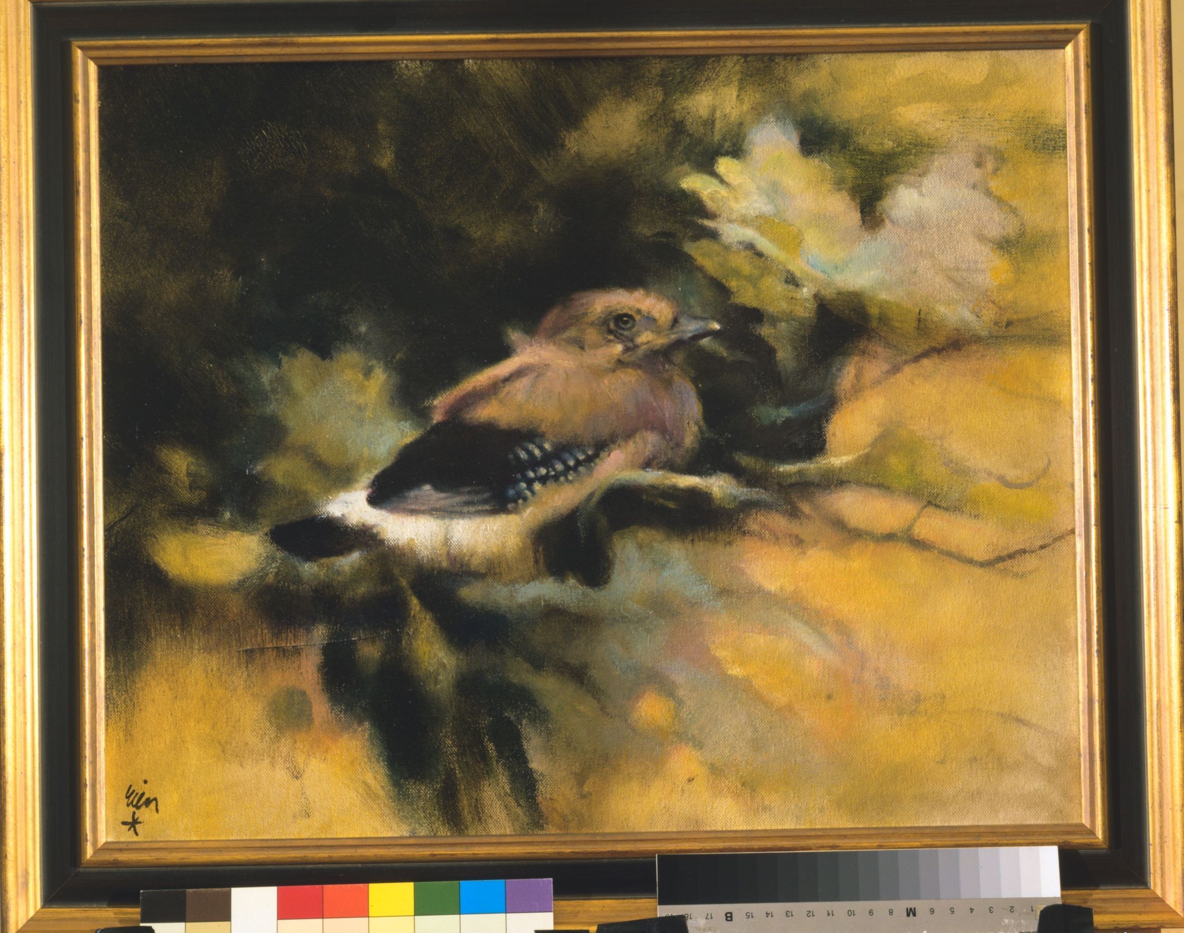 Oil on paper of a nesting robin by Rien PoortvlietCataloged By