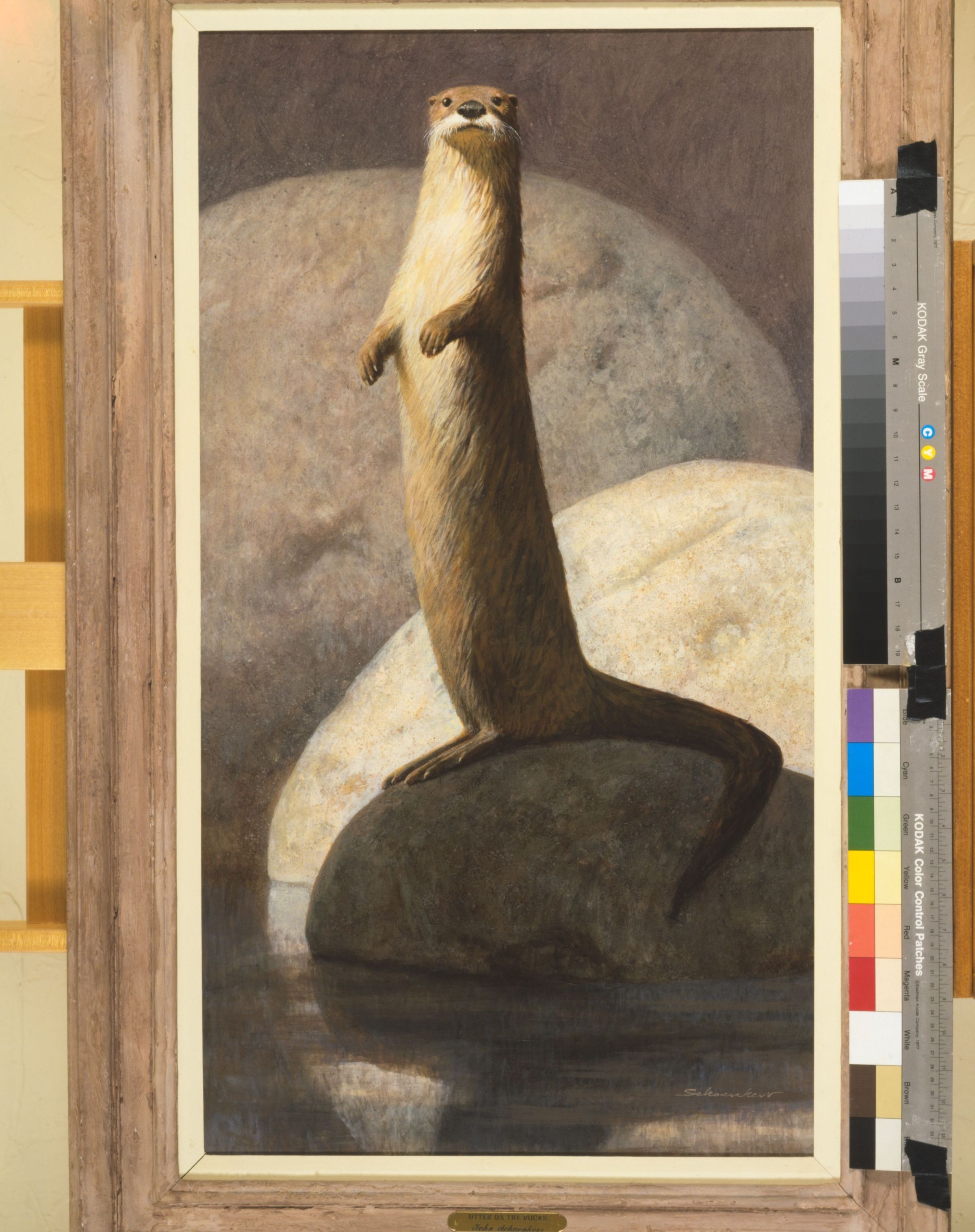 Painting of an otter standing on a rock by John SchoenherrCataloged By