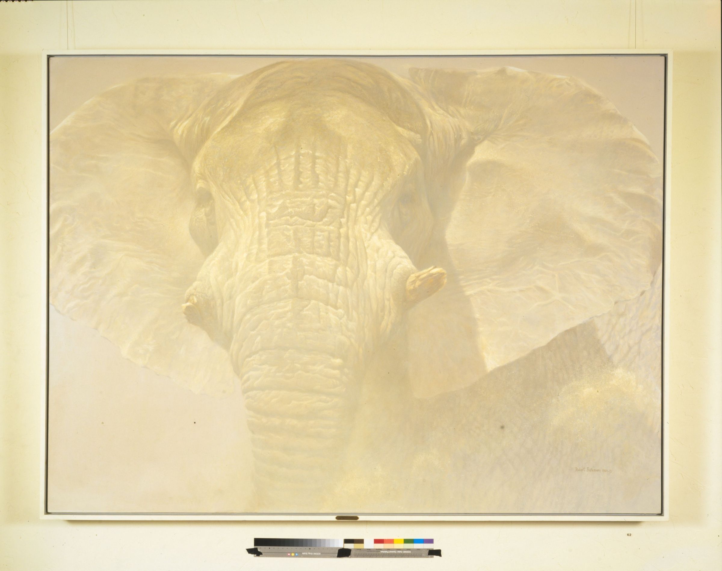 Painting of and elephant with broken tusksCataloged By