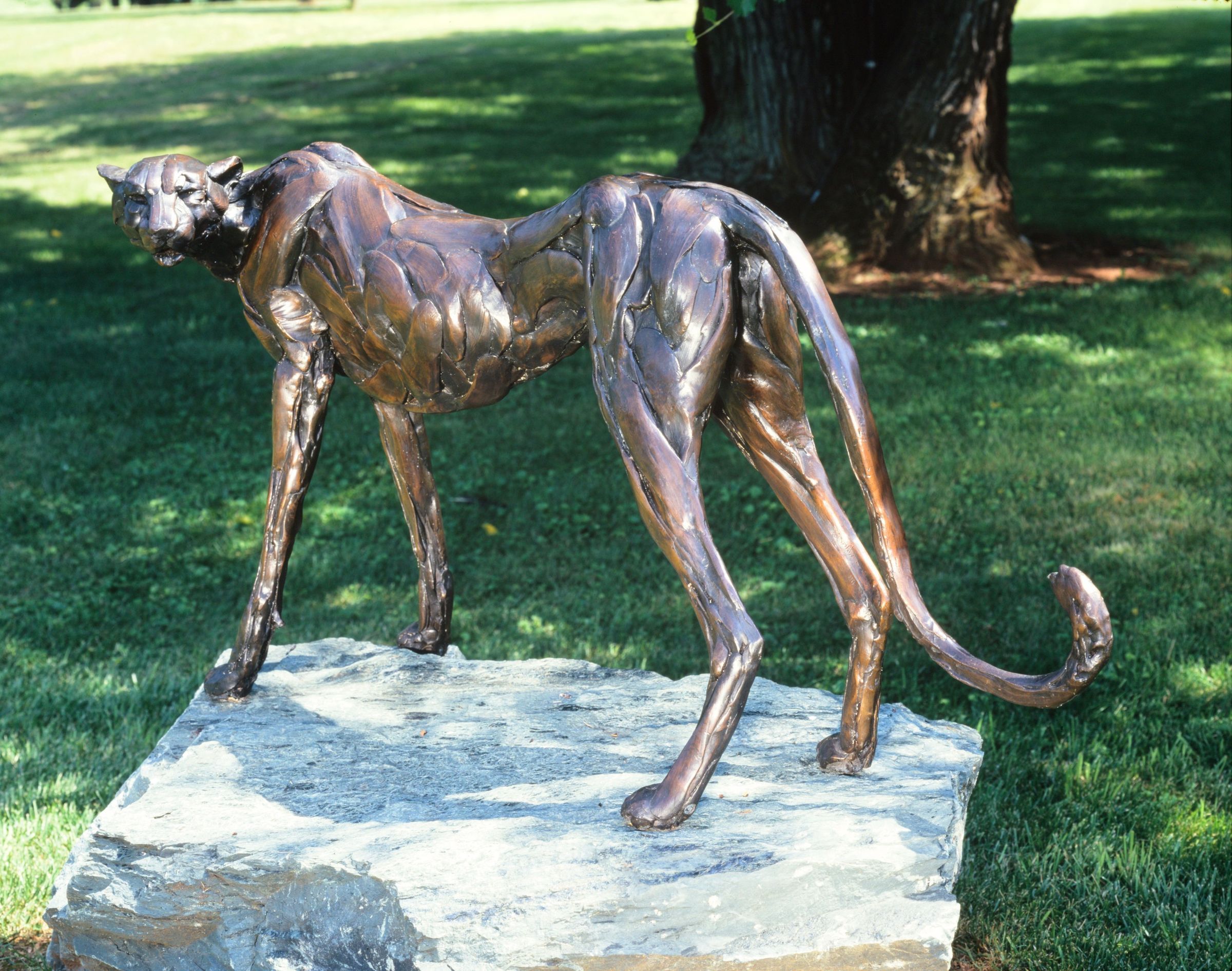 Life size bronze Sculpture of a cheetah by Bart WalterCataloged By
