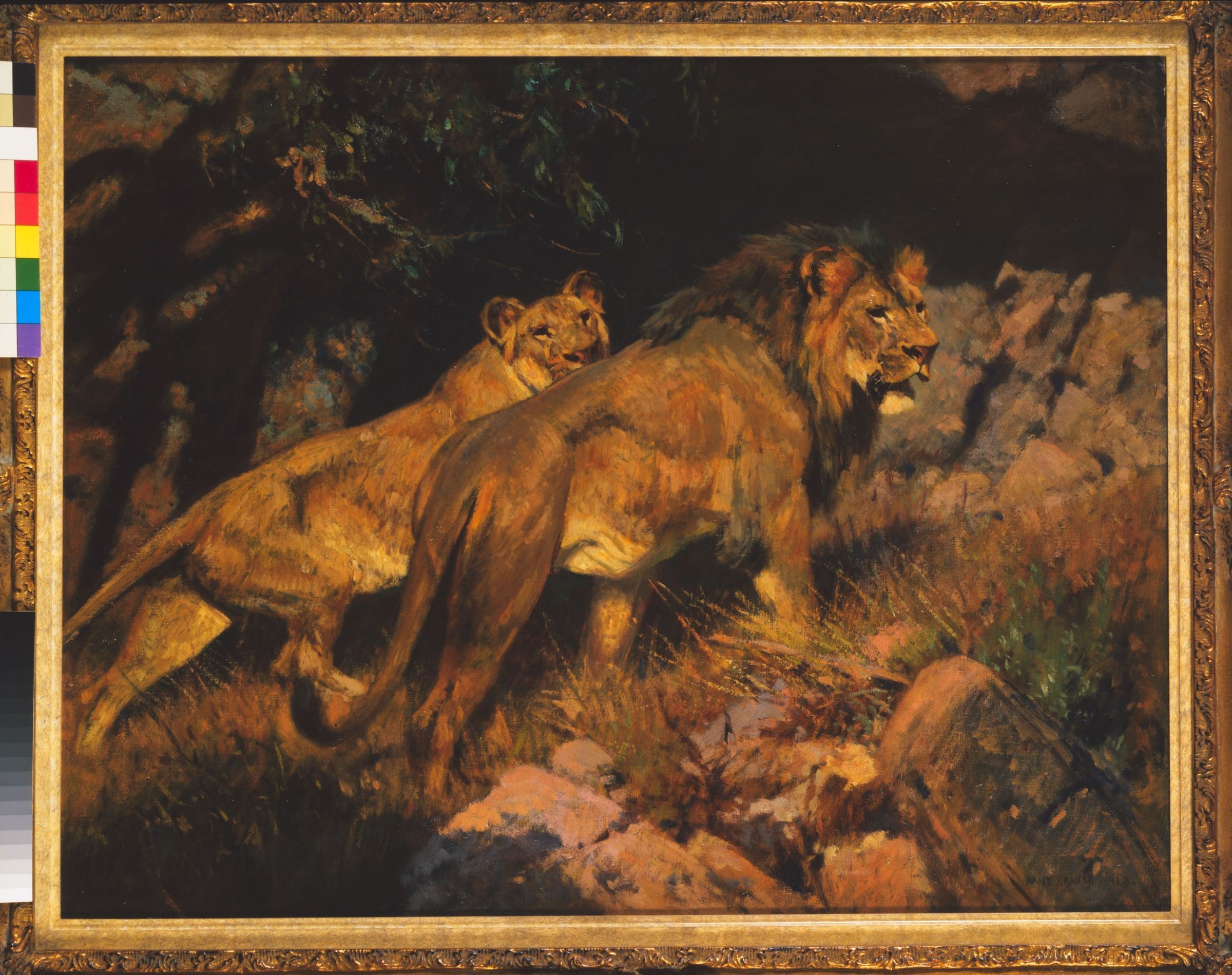 Painting of a Lion and Lioness by Hans KrauseCataloged By