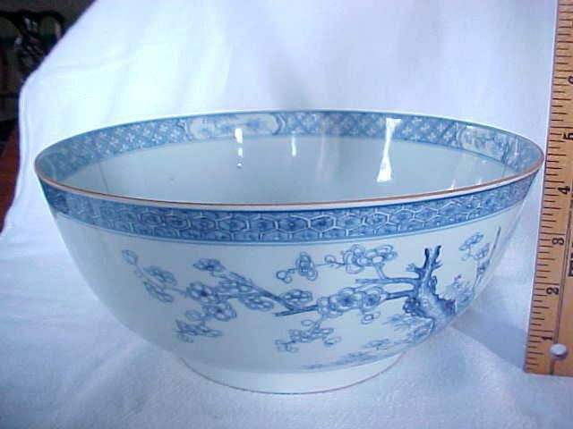 Chinese porcelain fruit bowl in blue and white decoration, c. 1800. Broken and repaired, 10" in dia.