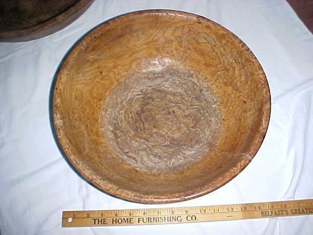 HUF / w04420 Bowl of burl. Very fine. 14 3/4" diameter. Gift of Roland Howard. June 1981 *crossfiled R.H. American burlwood bowl. 15" dia bowl, wooden, burl