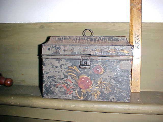 Toleware coffer top spice box, 9", early 19th c.