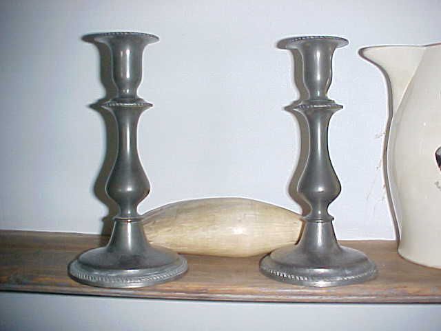Pair of pewter candlesticks of the push-up type. 8" h. c. 1830-50.