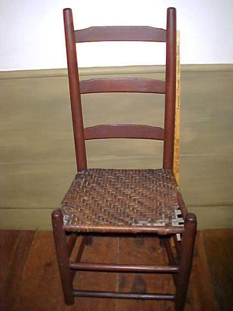 HFC3 / w08831 Chair - Straight ladderback - brown wood, splint seat. American ladderback side chair with splint ash seat, 39" high at back, c. 1800 [erroneously noted style: "ladderback"]