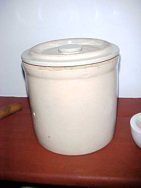 w08849 White crock with cover.