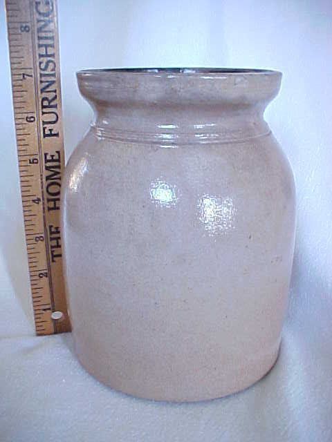 HUW / w04438 / PH Crock Tan color. EWD? American stoneware crock c. 1850, 7" h.
