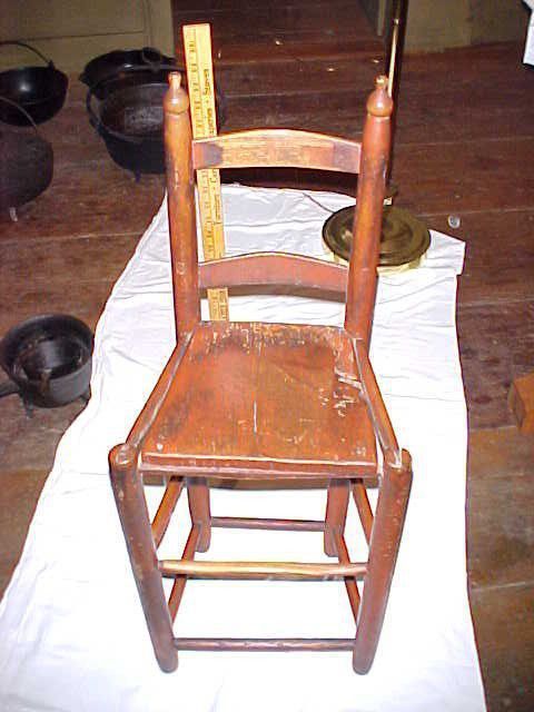 American child's ladderback highchair, old red paint, plank seat. 34"h. c. 1800.Made/Created
