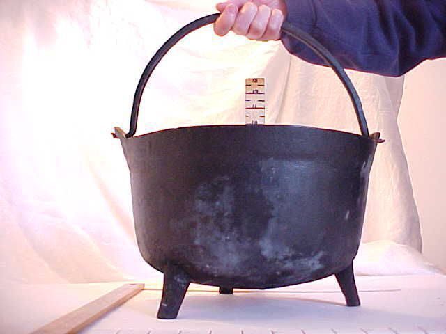 HUA2 / w04538 / HK Kettle. Iron pot - three legs. [sketch] Iron footed kettle with swing handle. 12" Bake kettle, without cover