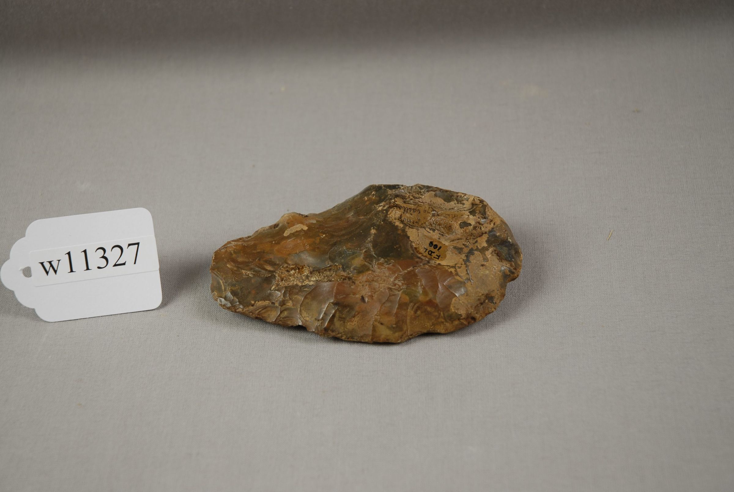 Flaked tool, such as used in skinning? worn