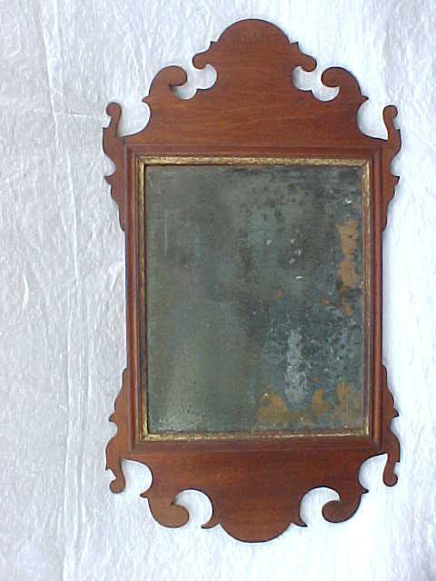 HFR / w04329 / PH Mirror - Chippendale Square glass set in plain design cut wood Gift of Mr. Roland Howard. American Chippendale fretsawn courting mirror with gilt liner and original glass. c. 1785.