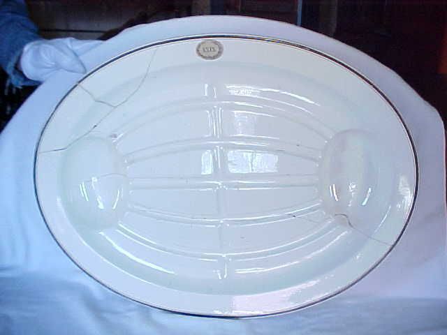 Wedgwood (England) creamware double tree well roast platter with brown transfer regimental insignia, c. 1816. 23" l., Cracked