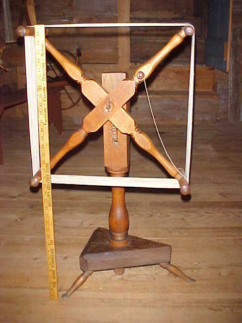 Standing four arm yarn winder with feet, early 19th c., 38" h.