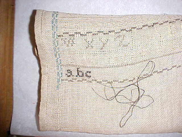 Unframed American alphabet sampler, upper case alphabet and unfinished lower case.15 1/4" x 14". Some fading. c. 1830.