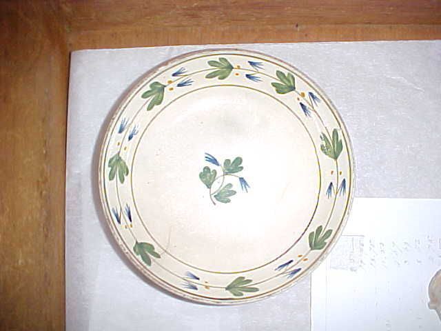 English soft paste drinking saucer decorated with green and blue sprigs. c. 1810-15.