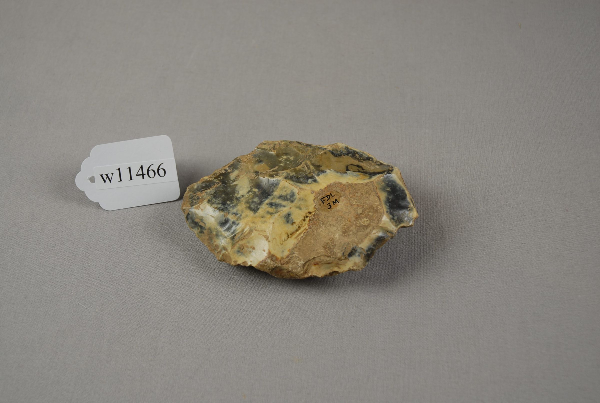 F DL / w11466 Large grattoir Mousterian type Boves, Near Amiens, France 3M L. Delambre, Purchased 1903 - '06 - J.H.W.