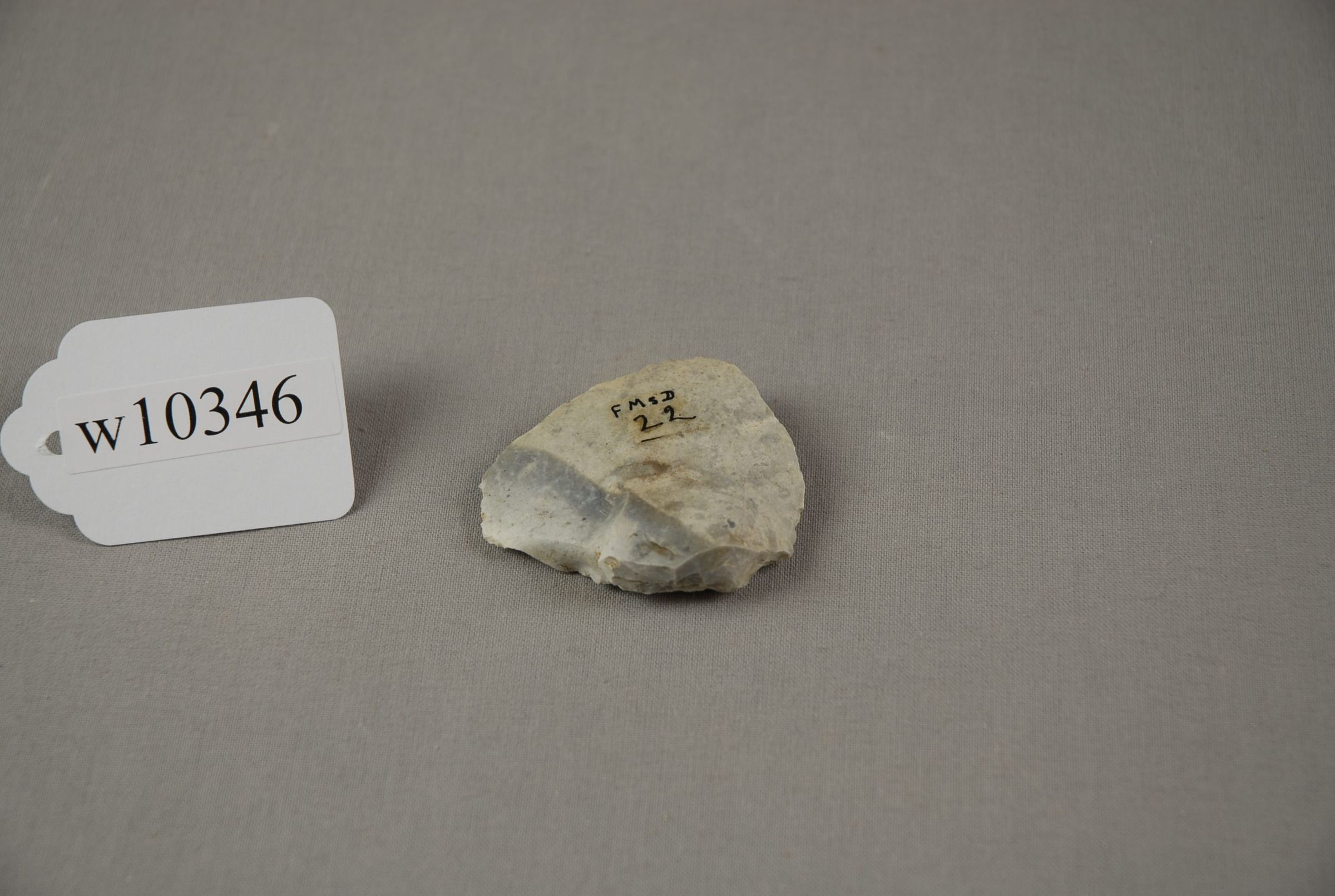 F MsD(sc) / w10346 Scraper Mousterian Hautes-Roches-Chateauneuf, Charente 22 L. Didon, Purchased 1916 - J.H.W.