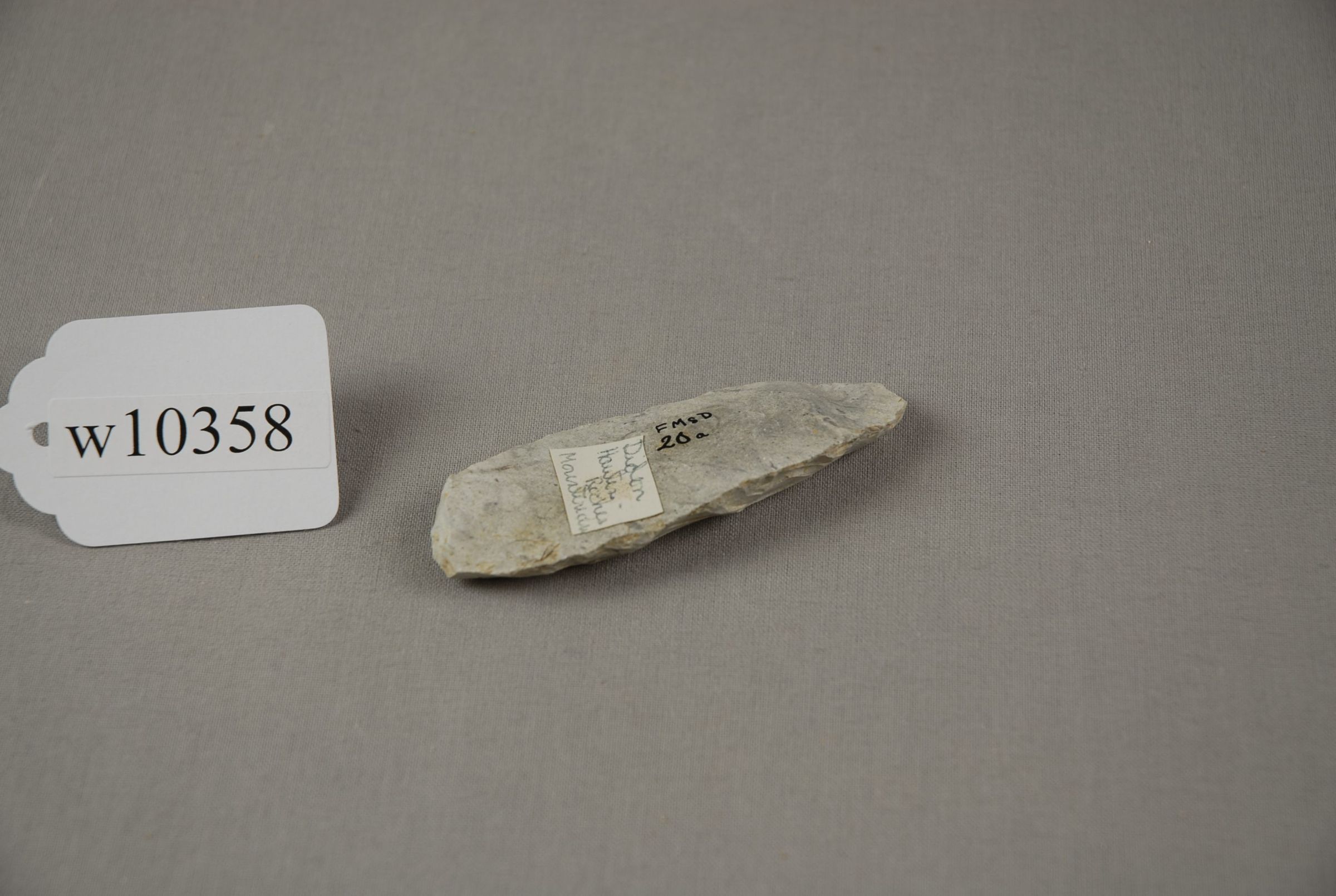 F MsD(r) / w10358 Racloir or blade Mousterian Hautes-Roches-Chateauneuf, Charente 20a L. Didon, Purchased 1916 - J.H.W.