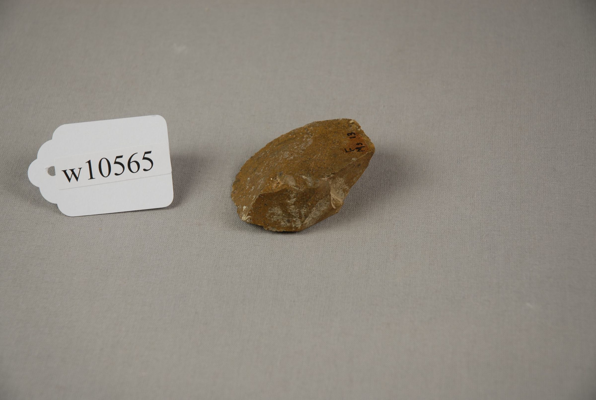 F Ms(f) / w10565 Flaked flint tool Mousterian Cave du Placard, Charente, France 13 De Marat , Purchased 1916 by J.H.W.