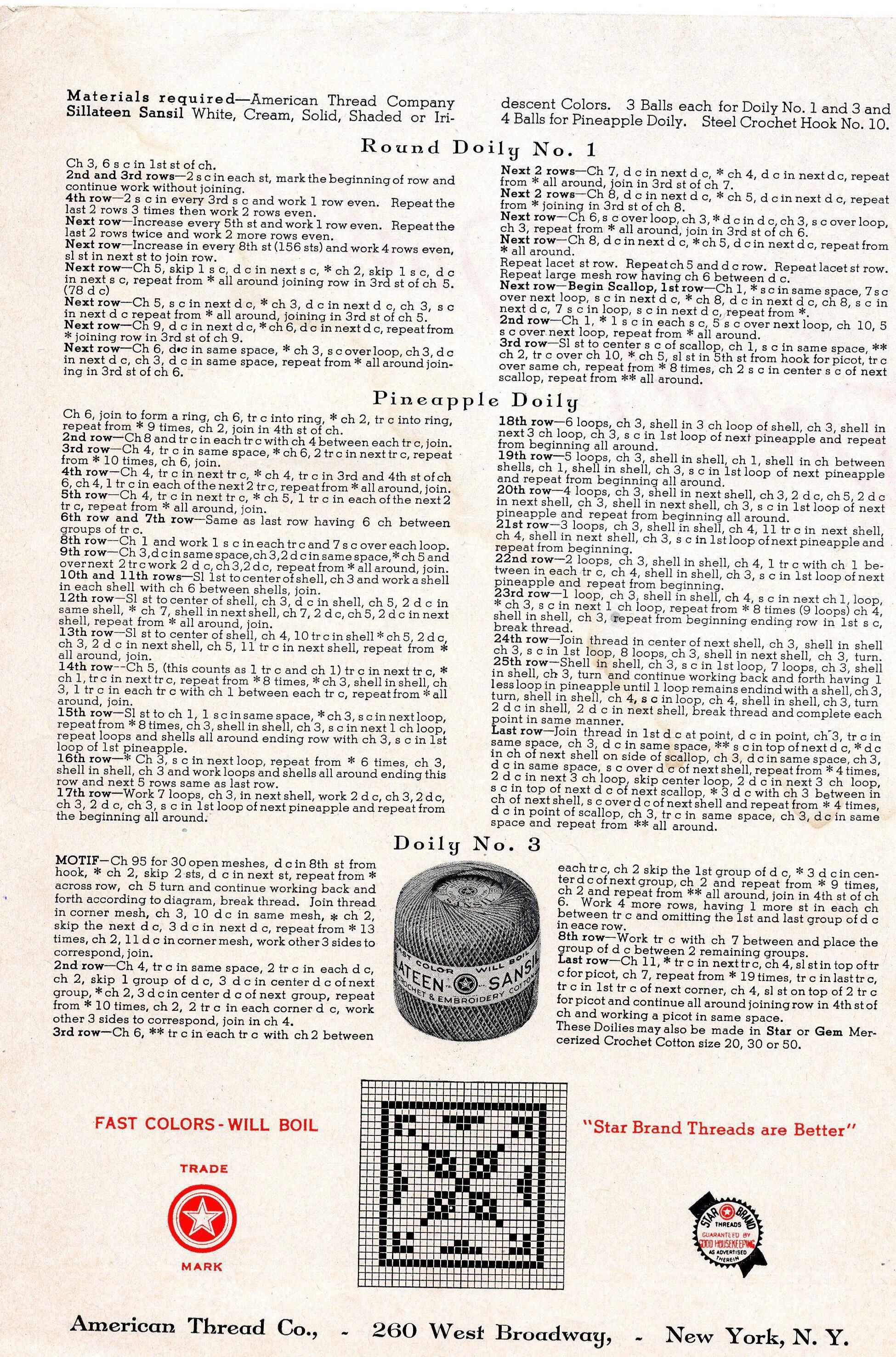 1 sheet double sided pamphlet about crocheted doilies from American Thread. Free Leaflet No 87Created By
