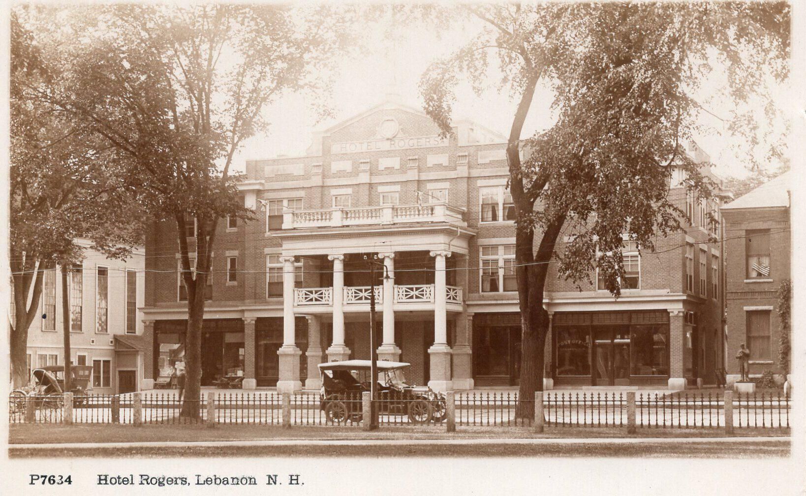A black and white postcard of Hotel Rogers in Lebanon, N.H.Condition