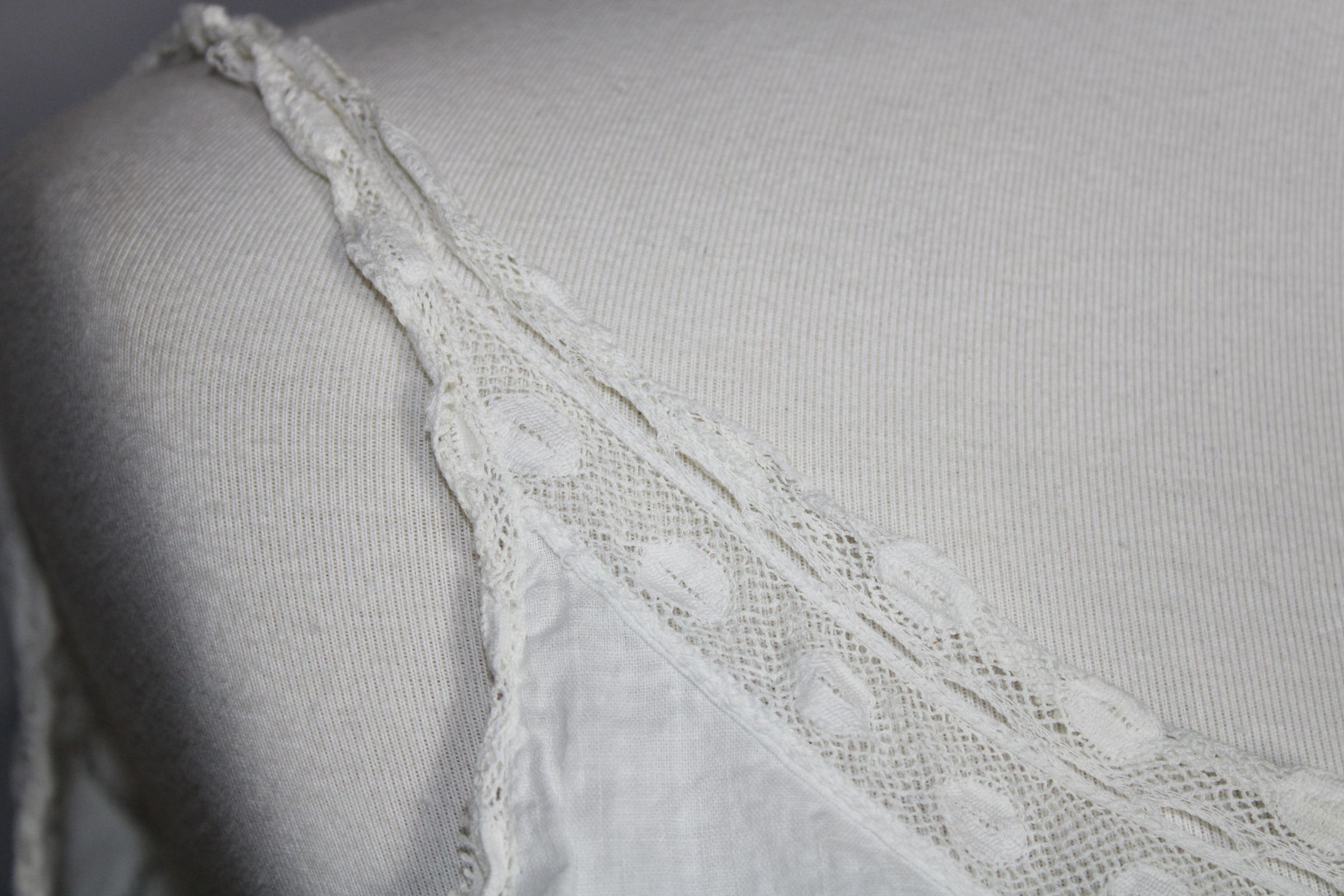 Early 20th century corset cover. Drawstring waist. Missing ribbon along neckline.Collection