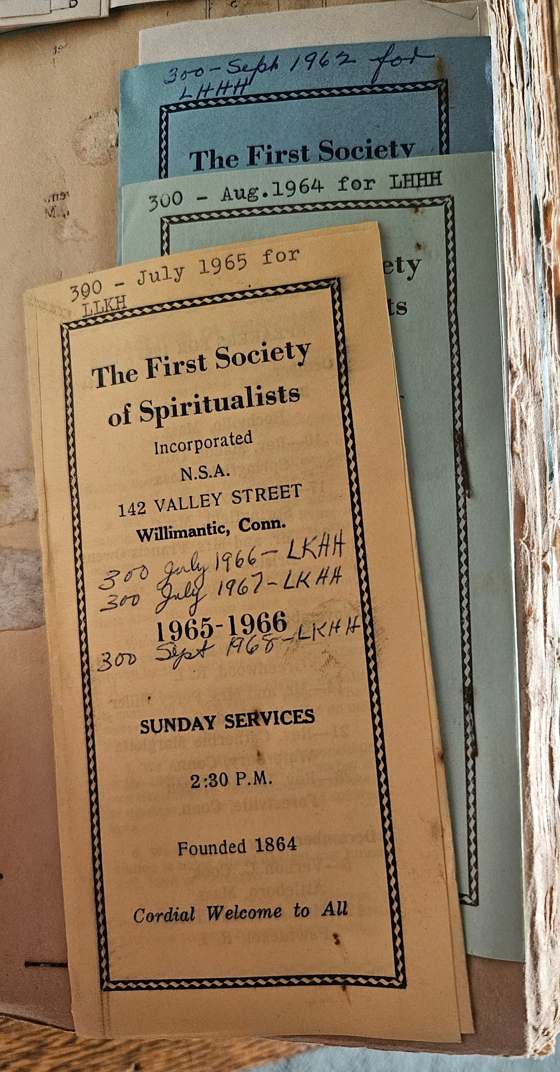 A cloth-bound ledger or record book with blank, ruled pages, containing pasted-in printer's proofs for customers in the greater Willimantic, CT area. Also contains a hand-written index. The cloth cover is faded green with black design work. Customers include a wide variety of local businesses, churches, clubs, political groups, etc. Entries are date from c. 1940 to c. 1965. The name of the printer is not noted, but is hypothesized to be the Hall and Bill Company, Willimantic largest printer during that period. The company opened in the late 1800s and closed in the early 1990s.Use