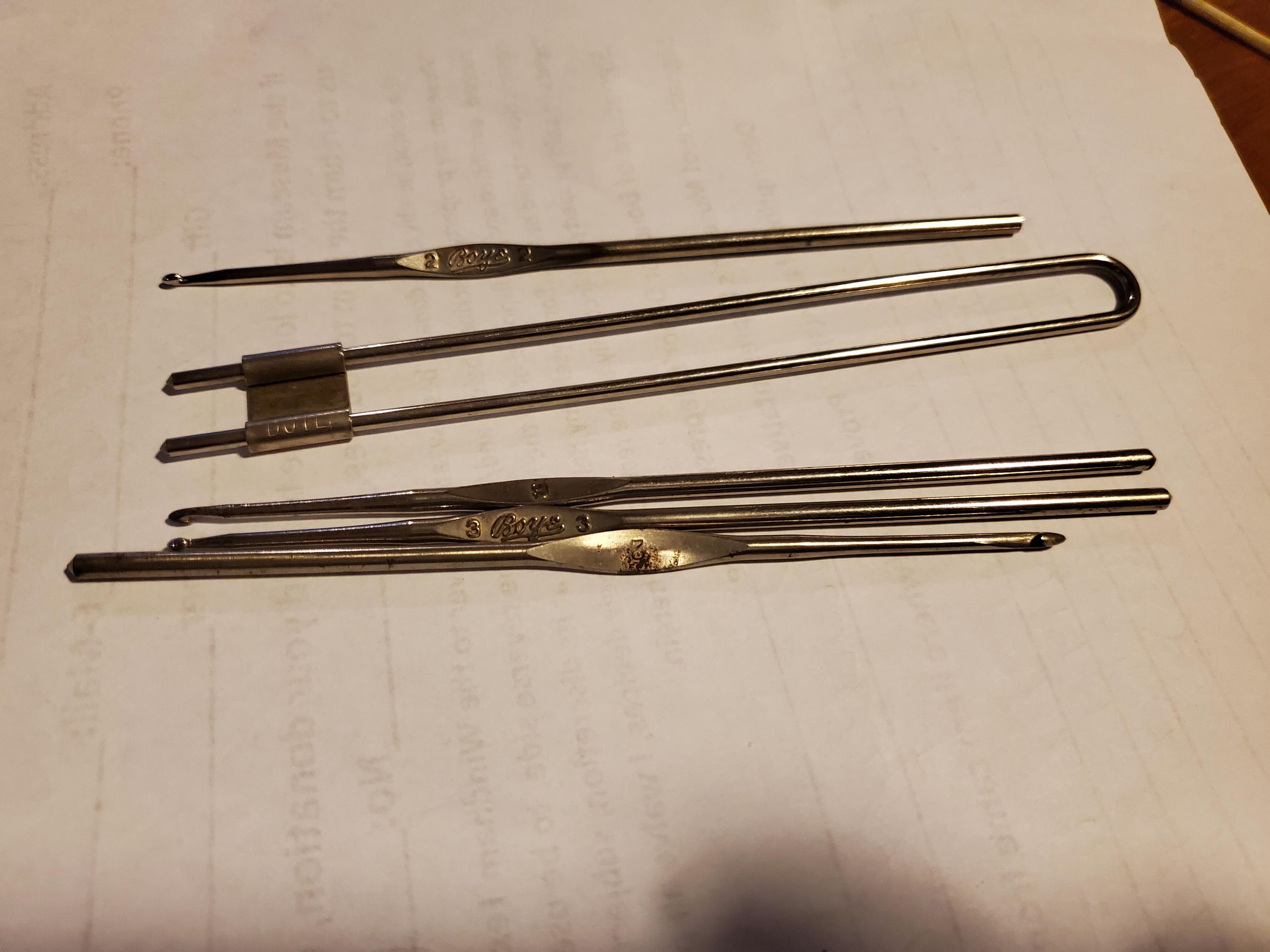 2 Size 2 Needles, 2 Size 3 Needles and a Hair Lace Tool