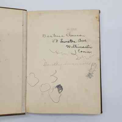 An arithmetic textbook published in 1916. On the front flyleaf is handwritten "Beatrice Clauson/ 53 Lewiston Ave./ Willimantic, Conn." and "Dorothy Swanson" along with some pencil drawings/doodles which are also found throughout the book. Beatrice Clauson of Willimantic was born in 1918 so this book was likely used by her in the 1920s.Collection