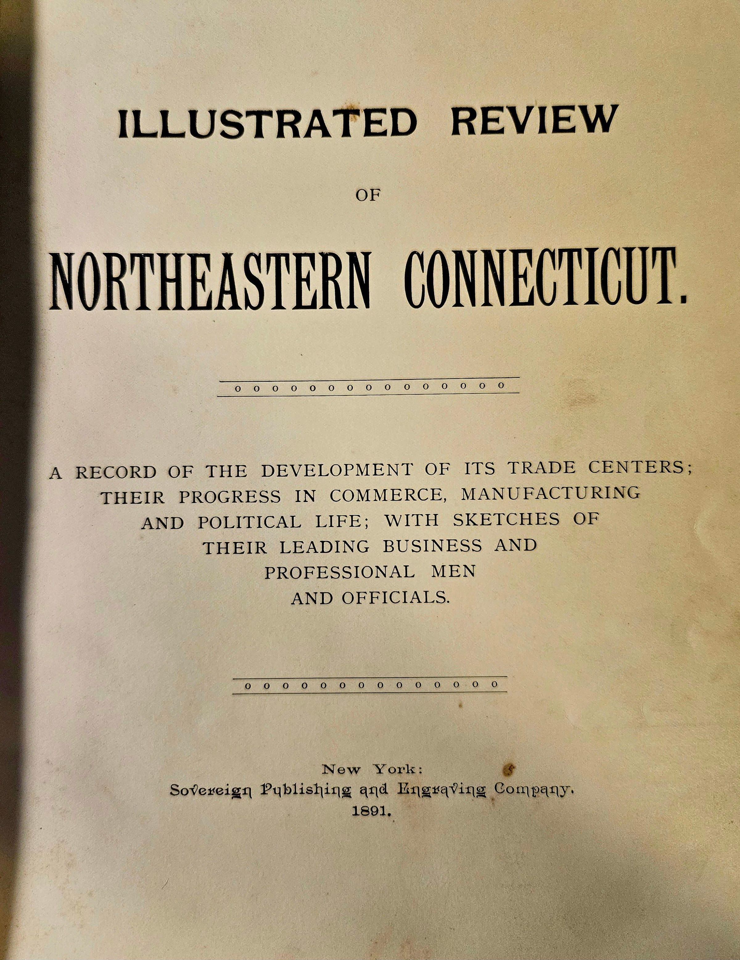 Illustrated Review of Northeastern Connecticut: A Record of the Development of Its Trade Centers; Their Progress in Commerce, Manufacturing and Political Life; With Sketches of Their Leading Business and Professional Men and Officials. (New York: Sovereign Publishing and Engraving Company, 1891).Collection